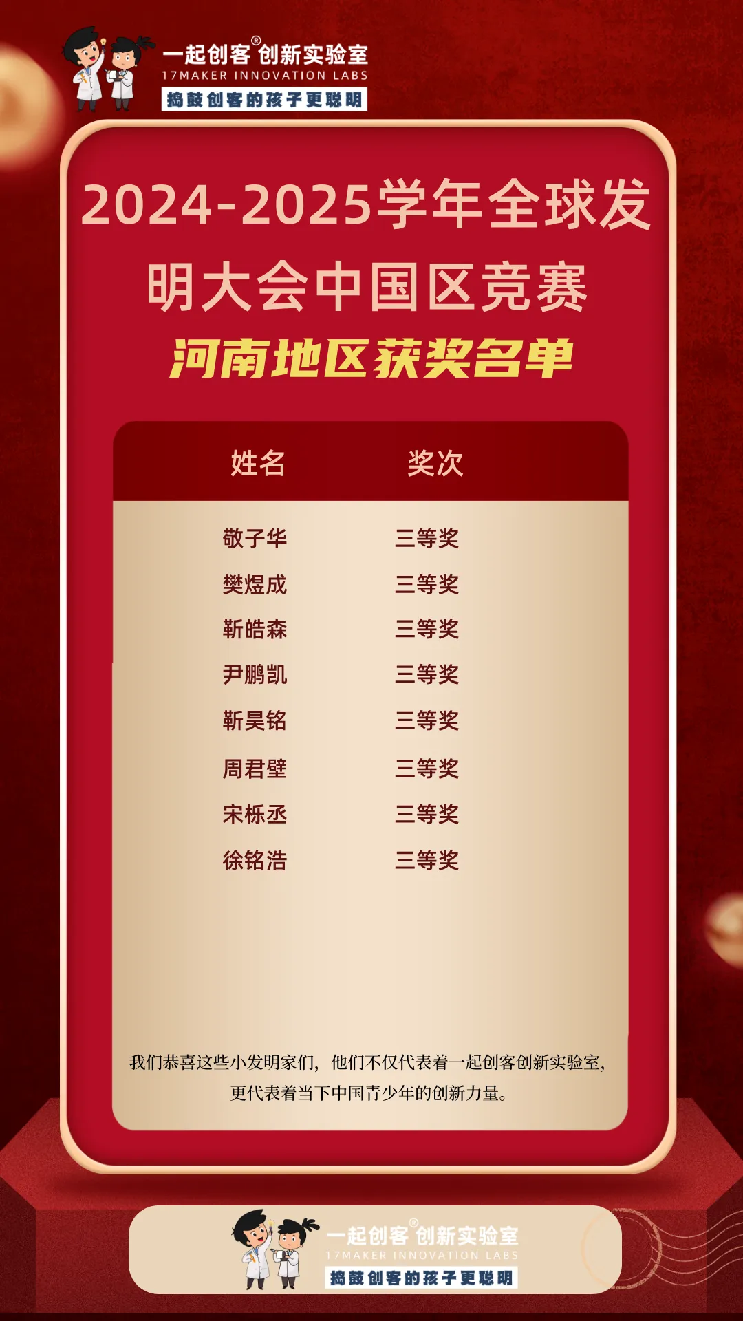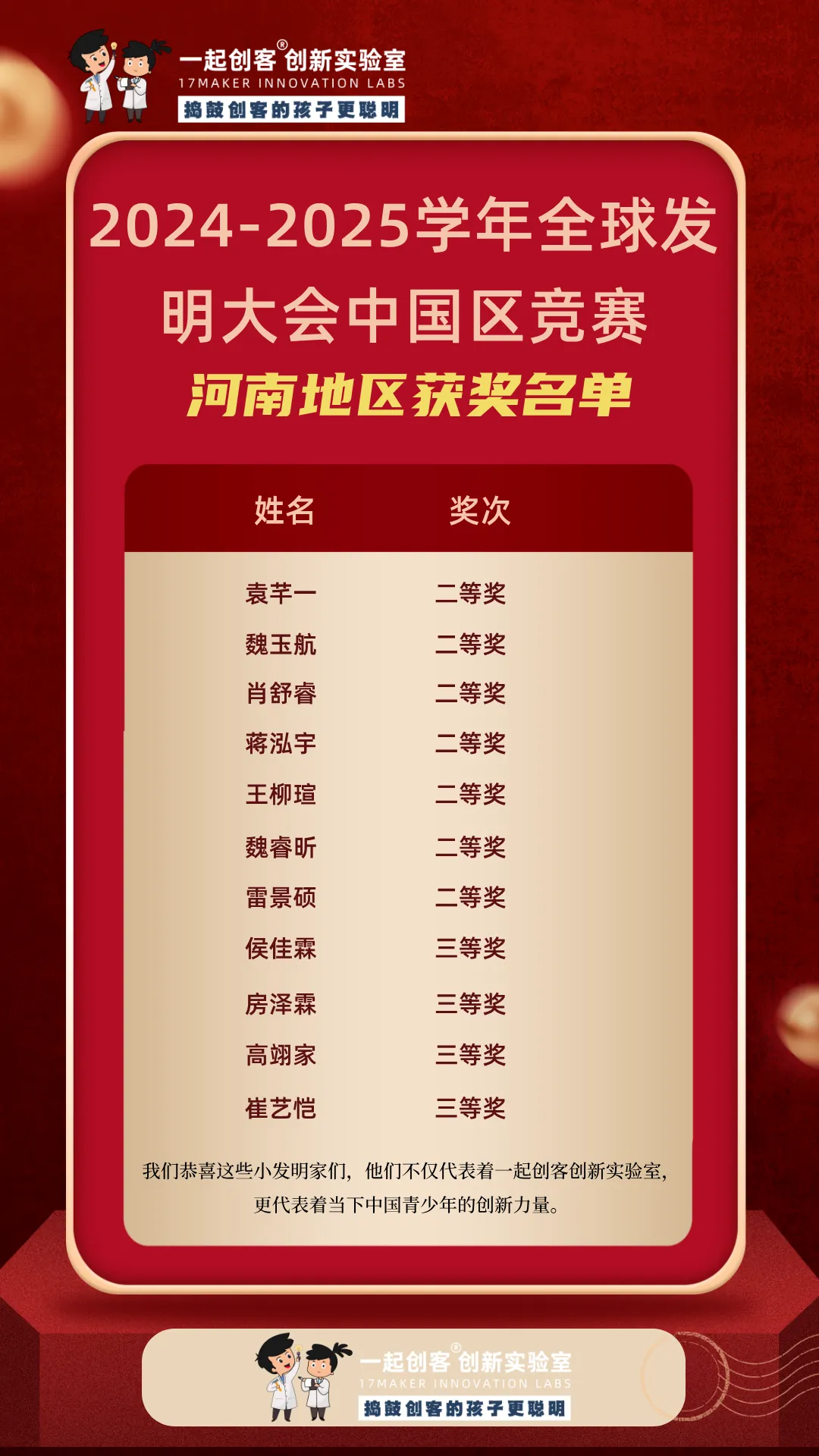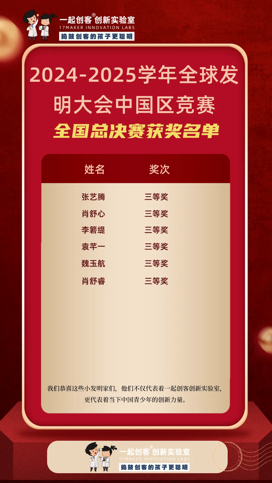 ICC全球发明大会中国区(Invention Convention China)作为教育部认可的白名单赛事,始终致力于推动青少年创新素养与实践能力的全面发展。比赛要求选手独立完成从发现问题、构思方案、动手制作到现场展示的全过程,是青少年展示创造才能、锻炼综合能力的重要平台。一起创客的学员们能在如此高规格的赛事中屡创佳绩,正是他们扎实功底与创新实力的生动体现。