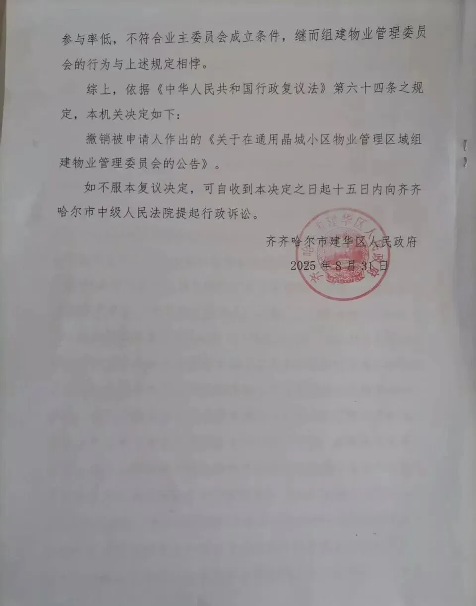 物管会是什么?它相当于一个“临时管理小组”,通常由街道办牵头成立,成员可能包括社区干部、物业代表等,权力比业委会更集中。但问题来了:小区业主们不干,一位业委会候选人直接向区政府提起“行政复议”(一种民告官的快速通道),结果区政府在2025年8月裁定街道办公告违法,予以撤销。