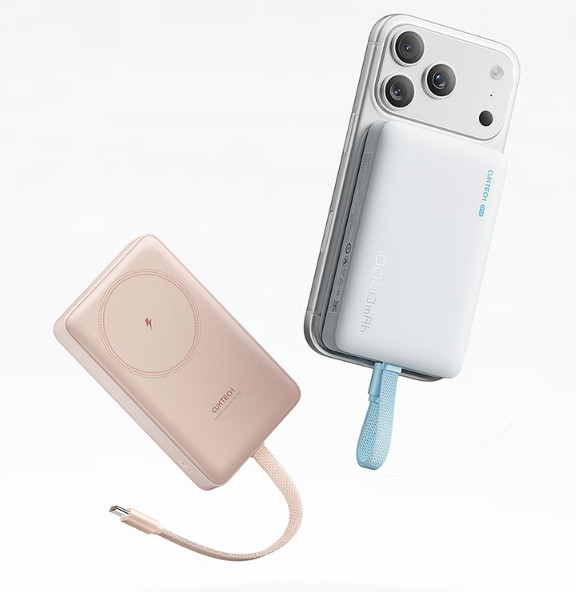 它的配置也挺靠谱,内置 10000mAh电池,额定 6000mAh,日常出门用完全没问题,基本能给手机充 一次多。支持 20W快充,日常应急补电速度还算可以,够用了。特别方便的是, 12N磁芯磁吸充电,只要一贴上就能充,省去插线的麻烦。它还搭载了创新的 温控技术,实时监控温度,保证充电过程中的安全性。