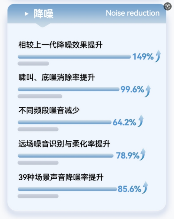 降噪整体还行,虽不能说完美,但在地铁站或者市集里背景噪声不会压倒主要声源。好的点是中高频的层次感和音质真实度,像听轻音乐或自然环境音,整体感觉挺自然的。不过人声清晰度有点一般,尤其多人同时讲话时,语音细节容易模糊。技术方面结合了AI场景自适应识别和精细啸叫抑制,通过实时算法动态调节声音增益和频率,使不同场景下声音尽量保持自然和稳定。