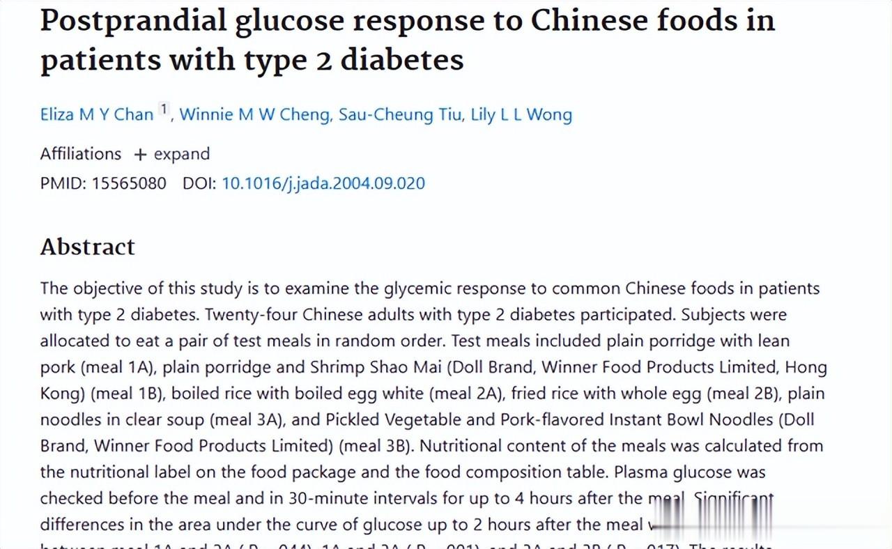 2、PubMed.2型糖尿病患者餐后对中式食物的血糖反应.2004