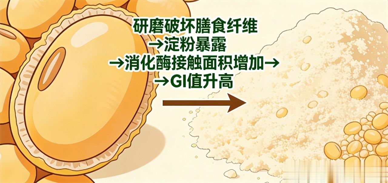 另外一点,这种“粗粮细做”的做法,本质上也是破坏了粗粮保持血糖平稳的最大优势,食物形态的完整性。当完整的谷物被研磨成极细的粉末时,其外部的膳食纤维保护层被破坏,内部的淀粉得以充分暴露,这导致在食用后,淀粉与消化酶的接触面积大大增加,消化吸收速度急剧加快,血糖生成指数(GI值)也随之显著升高。