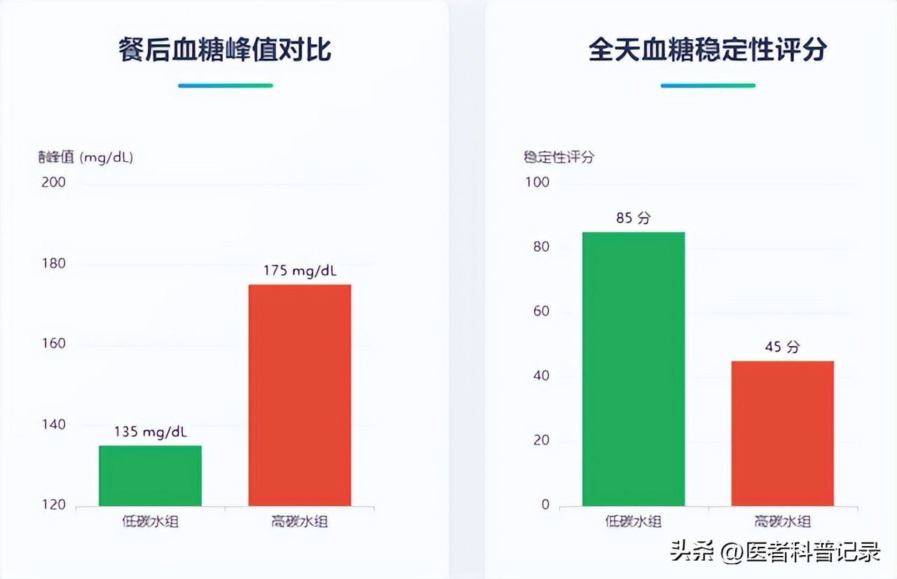 《美国临床营养学杂志》的一项研究中,研究者让2型糖尿病患者分成两组,一组吃以鸡蛋、奶酪等蛋白质和脂肪为主的低碳水早餐,另一组参与者,食用的就是高碳水早餐,比如白粥、面包。研究结果显示,低碳水早餐组患者的全天血糖稳定性显著提升,餐后血糖峰值水平明显降低,该结果为 “白粥类高碳水食物不利于控糖” 提供了直接实证支持。