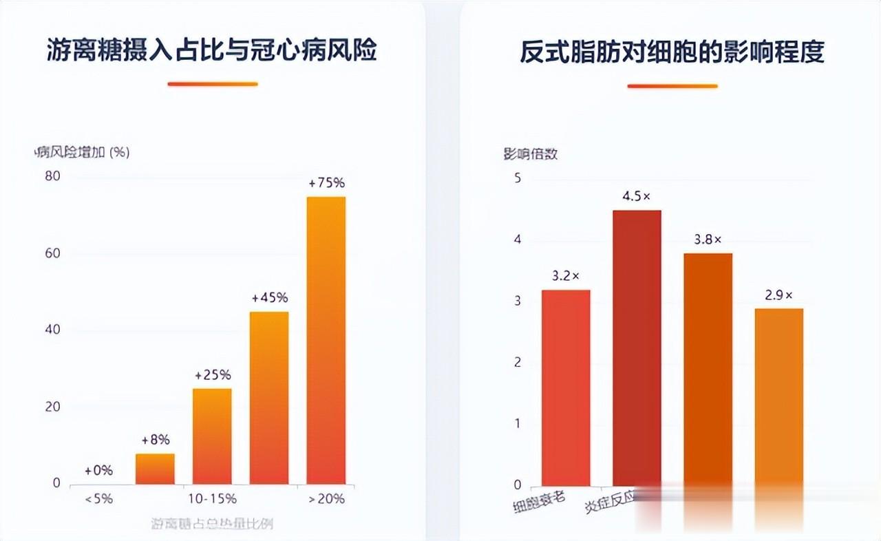 此外,甜点里常用的奶油或植物起酥油可能含有反式脂肪,而反式脂肪被认为是最不健康的脂肪之一,对身体有害。一项发表在《自然·医学》上的大型荟萃分析发现,最主要的反式脂肪酸-反油酸,会通过特定的分子通路,显著加剧细胞的衰老和炎症反应。这种慢性的炎症状态,正是糖尿病心血管并发症(如动脉硬化、冠心病)发生和发展的核心驱动力之一。