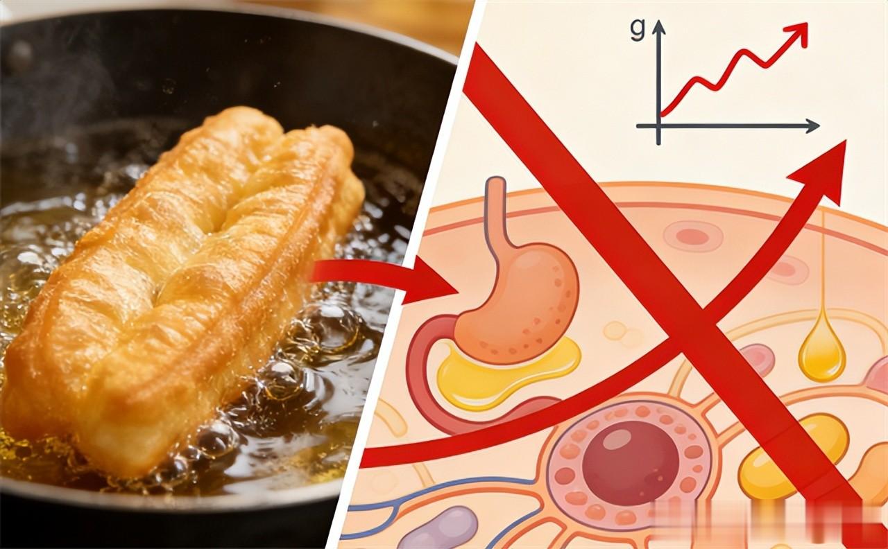 油条、油饼凭借酥脆的口感,成了不少人的早餐首选,但这类早餐的主要原料是精制面粉,其碳水化合物结构经过高度加工,淀粉更易被消化酶迅速分解,成为葡萄糖进入血液。