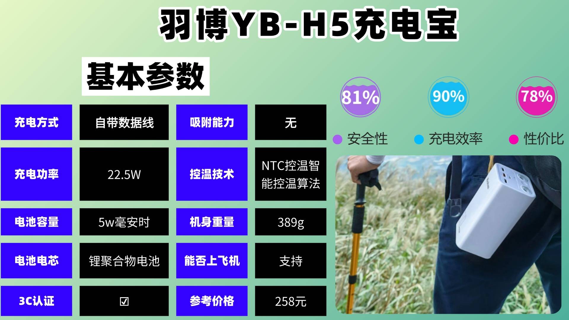 羽博YB-H5充电宝是一款大容量、高性能的充电宝,适合需要长时间外出或者为多个设备充电的用户。它内置了50000mAh的超大电池容量,足以为手机、平板、耳机等电子设备提供多次充电,无论是长时间旅行还是连续使用,都能提供充足的电力支持。充电宝采用锂聚合物电池电芯,具有较高的稳定性和安全性,确保了使用过程中的可靠性。此外,羽博YB-H5支持22.5W的快充功率,能够快速为设备充电,节省充电等待时间。它配备了四个接口,包括3个USB接口和1个type-C接口,能够同时为多个设备充电,解决了多个设备同时充电的需求。充电宝还自带了LED灯显,能够实时显示电池电量,使用起来更加便捷。大容量的设计、多个接口、以及LED显示灯的贴心设计,使得羽博YB-H5成为一款功能齐全且高效的充电宝。