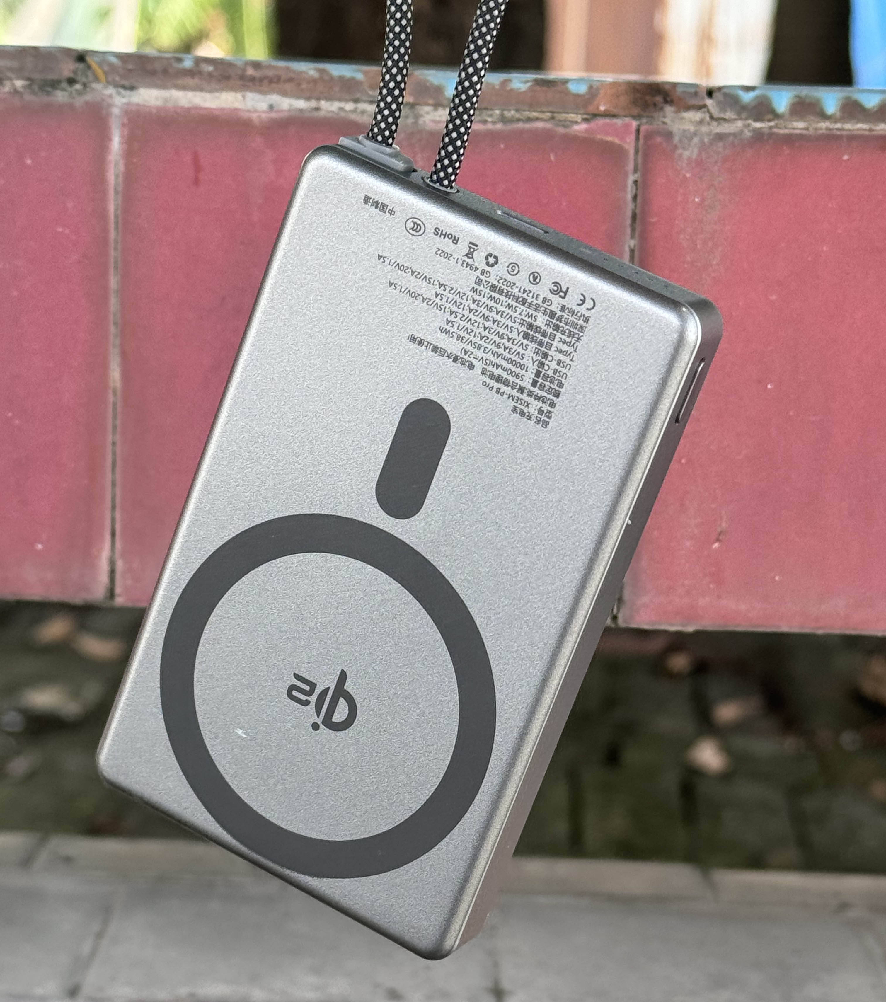 充电宝采用磁吸设计,配合内置的单口数据线,裸机状态下iPhone吸附稳定,充电时不易移位或脱落,出门携带更加方便。然而,这款充电宝的无线充电功率较低,无法满足对无线快充有较高需求的用户。