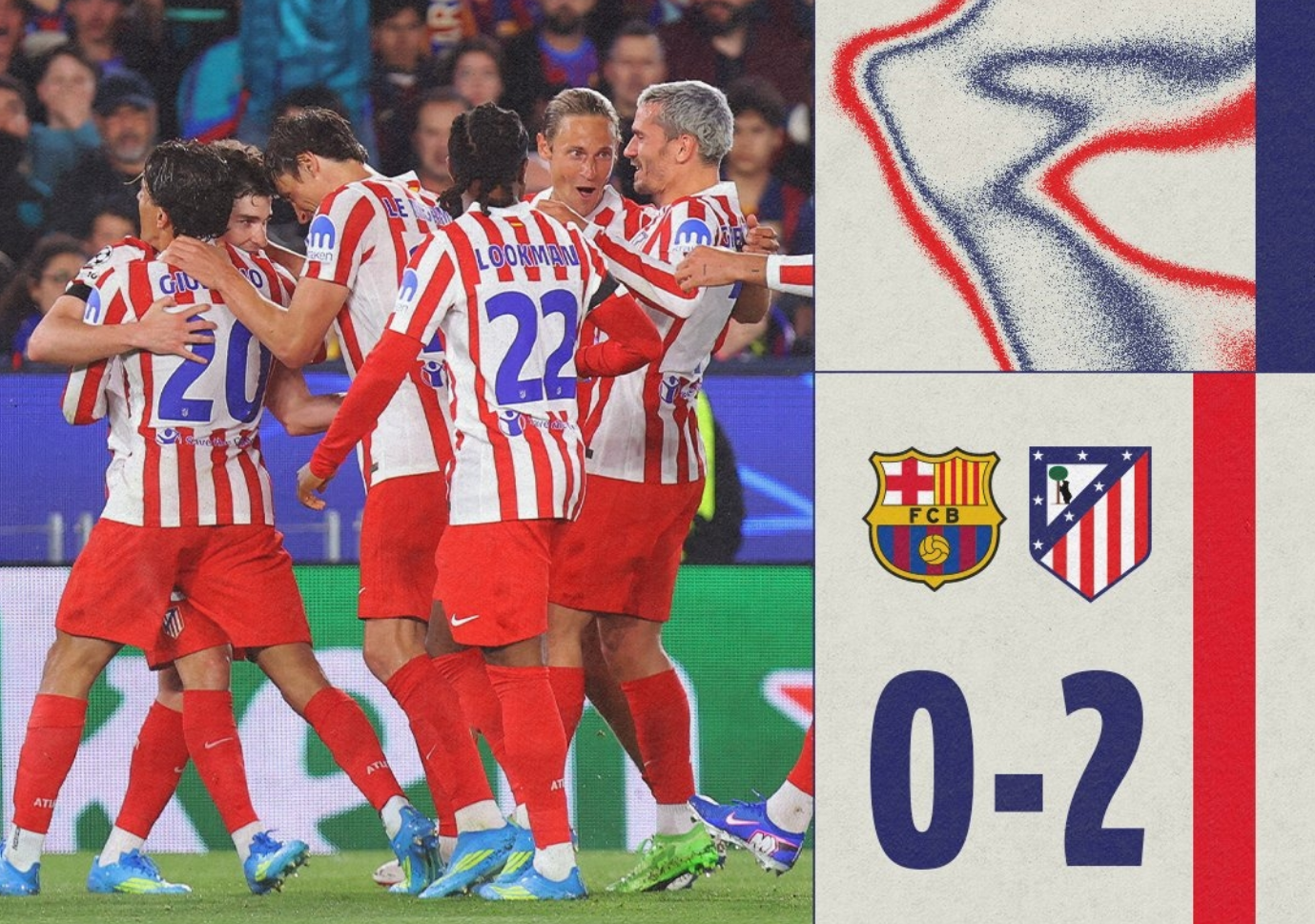 昨天凌晨在诺坎普,在这场万众瞩目的1/4决赛中,马竞在客场2-0攻克巴萨,这也是马竞本赛季第二次击败巴萨。上一次是本赛季西班牙国王杯半决赛,当时马竞4-0大胜巴萨,并最终淘汰巴萨,不得不说马竞两次关键硬仗都碾压巴萨。