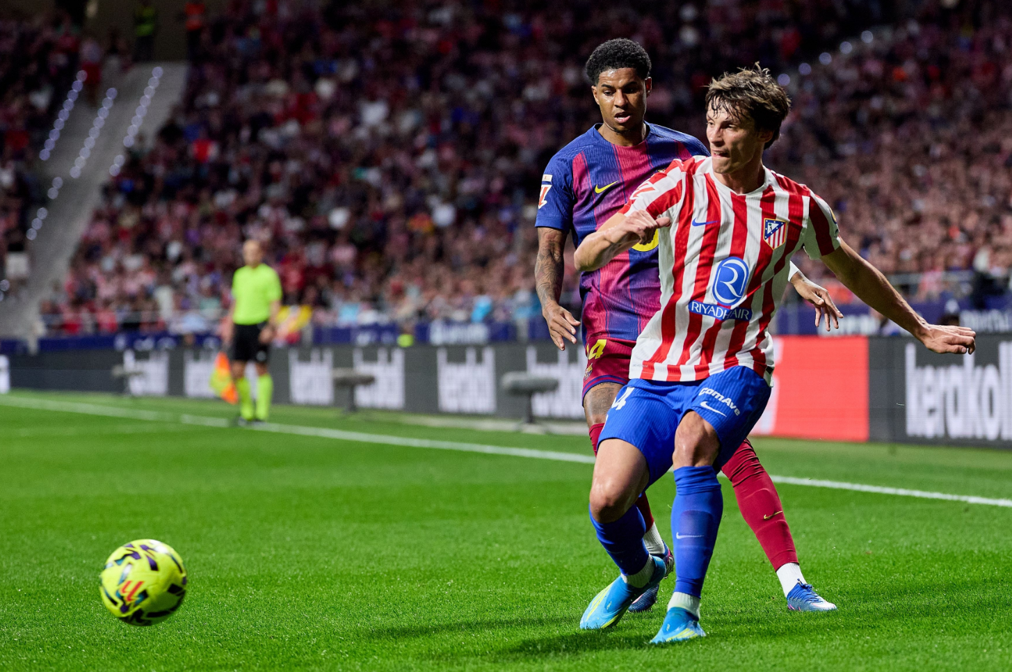 马竞在西蒙尼的调教下,以铁血防守和高效反击闻名。他们擅长摆出紧凑的防线,收缩在本方半场,放弃控球权,专注于防守反击。本场比赛,马竞利用巴萨后腰和中卫之间的空档,通过长传发动快速反击。从赛后的数据来看,马竞全场控球率只有42%,全场只有5次射门,但3次射正便打入2球,凭借定位球与快速反击客场零封巴萨。