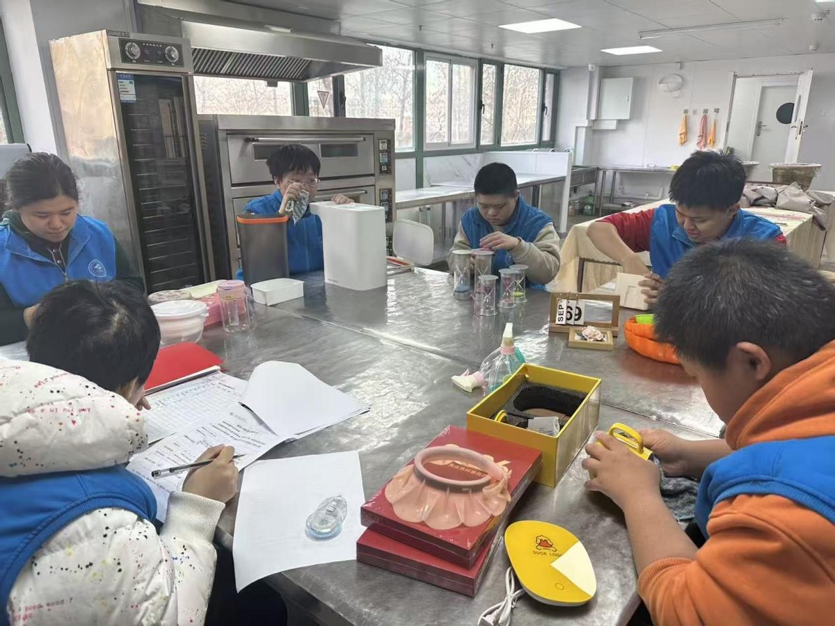 于是,张涛他们想尽各种办法,希望陪孩子们走得更远一点。他们做过插花、贴过对联、灌装过洗衣液,甚至还专门开过一个烘焙店。穷其所有的尝试,都是在试图找到一条适合自闭症群体、真正让他们能够有一定收入、能够解决家庭问题的途径。
