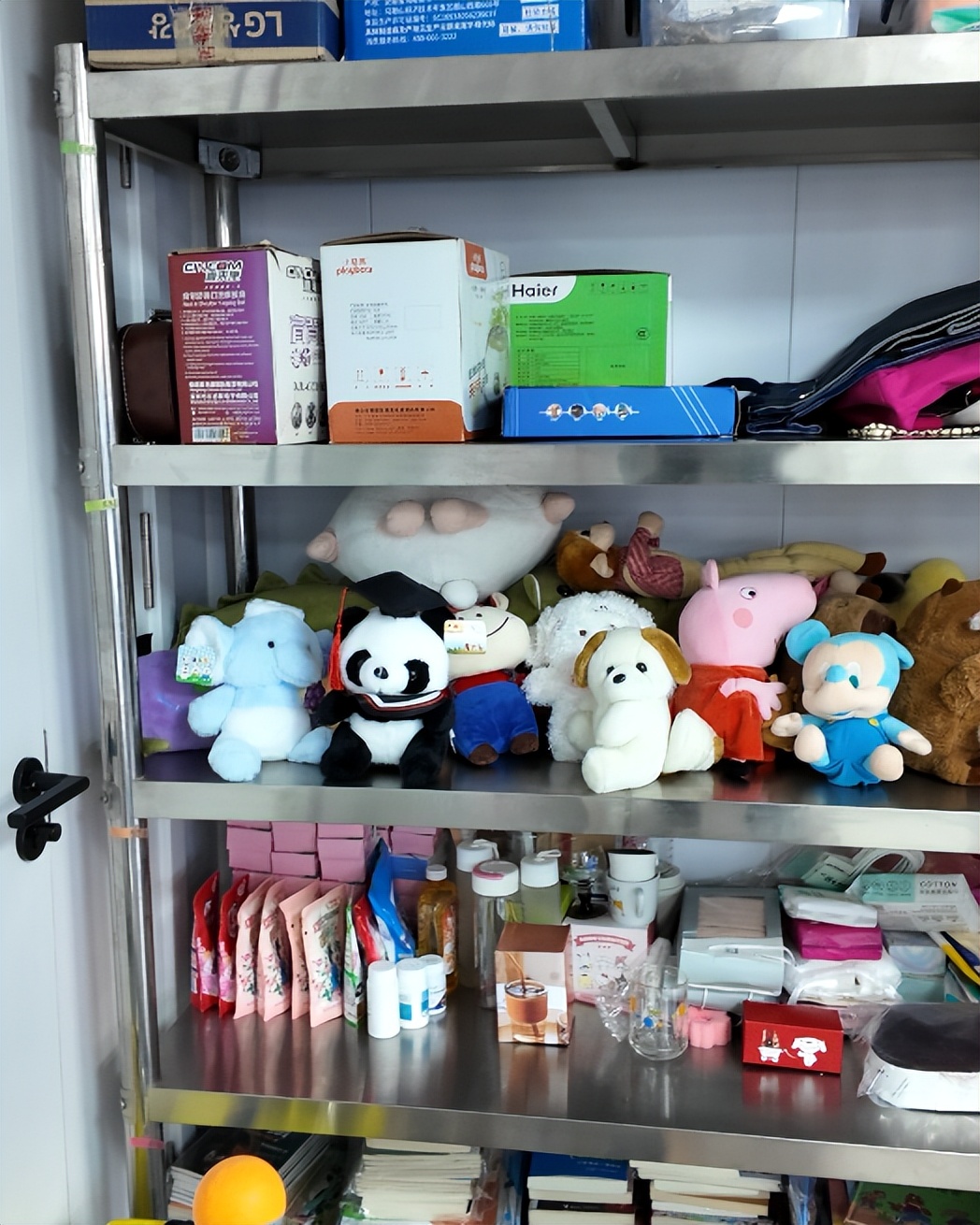 张涛告诉我,所有收到的物品都会在这里清理消毒,放到货架上,准备送到店里。这里的闲置物品林林总总,包括文体用品、图书、玩具,但不接收衣服和鞋子。