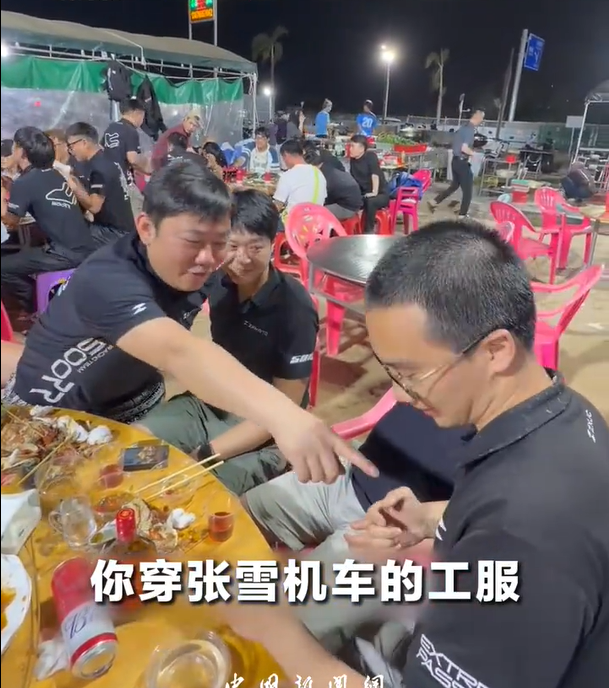 我看了中国新闻网发的原版视频,现场比网传的更“硬核”。不是什么高大上的会议室,就是一张普通的餐桌。小伙子当面向表达了求职意愿,张雪指着小伙身上的衣服,半开玩笑半认真地说:“没问题!你这张雪机车工服都穿起球了!这还有问题吗?”