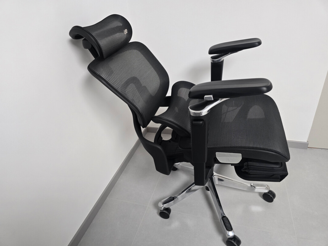 这把椅子最明显的感受是:久坐不累,而且不知不觉能坐很久。腰部是持续被托住的状态,背不会塌,人也不容易越坐越弯。座垫是六向回弹云感座垫,软而不塌,久坐大腿压力分散得比较好。145°无极后仰配合隐藏式伸缩腿托,中午靠一会儿很舒服。整体坐感偏“稳”和“贴”,不是那种一坐就陷进去的软,但对长期办公反而更友好。