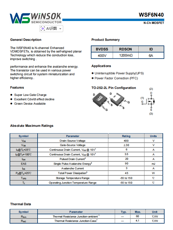 二、WSF6N40关键特性