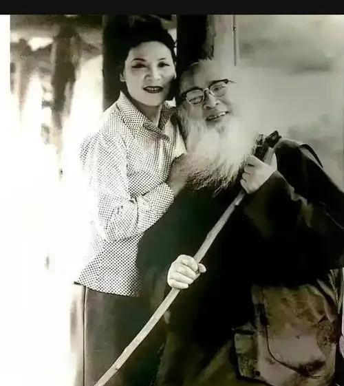 万花丛中一抹笑,形容的便是这样的场景了,这张照片是张大千和她的夫人徐雯波在赏花的时候拍摄的,从照片中看,两人的年纪相差非常大,徐雯波还是如花似玉,面容娇俏的年纪,但是张大千却已经胡子花白,面容也满是岁月的痕迹。