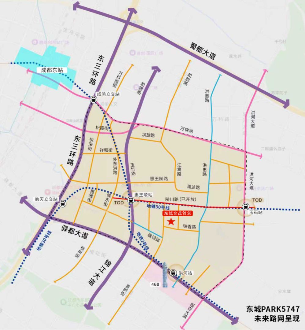 地处东三环,门口就是惠王陵地铁站,坐拥锦江大融城、驿都天街这样的重磅商业,东城PARK5747是城市具备潜力的洼地板块。随着东城锦带城市更新项目的持续兑现,这一区域迎来它的不断成长。