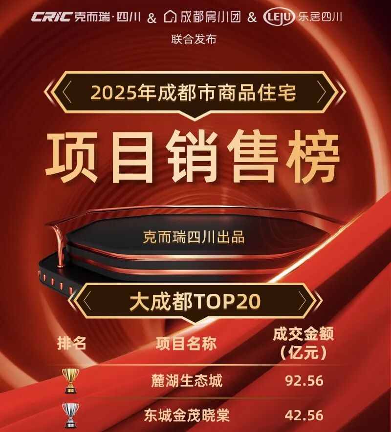 金茂落地区域的东城金茂晓棠项目,成为了去年成都楼市的现象级作品,创造了14开14罄的开盘神话——一个套均总价200万起的项目,凭单盘登上了2025年成都成交面积、成交套数TOP1,成交金额的TOP2。