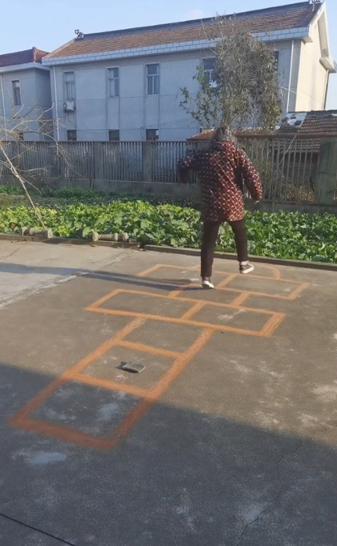 17.跳房子,一种健身又好玩的游戏,即使到现在,也有不少小孩玩。