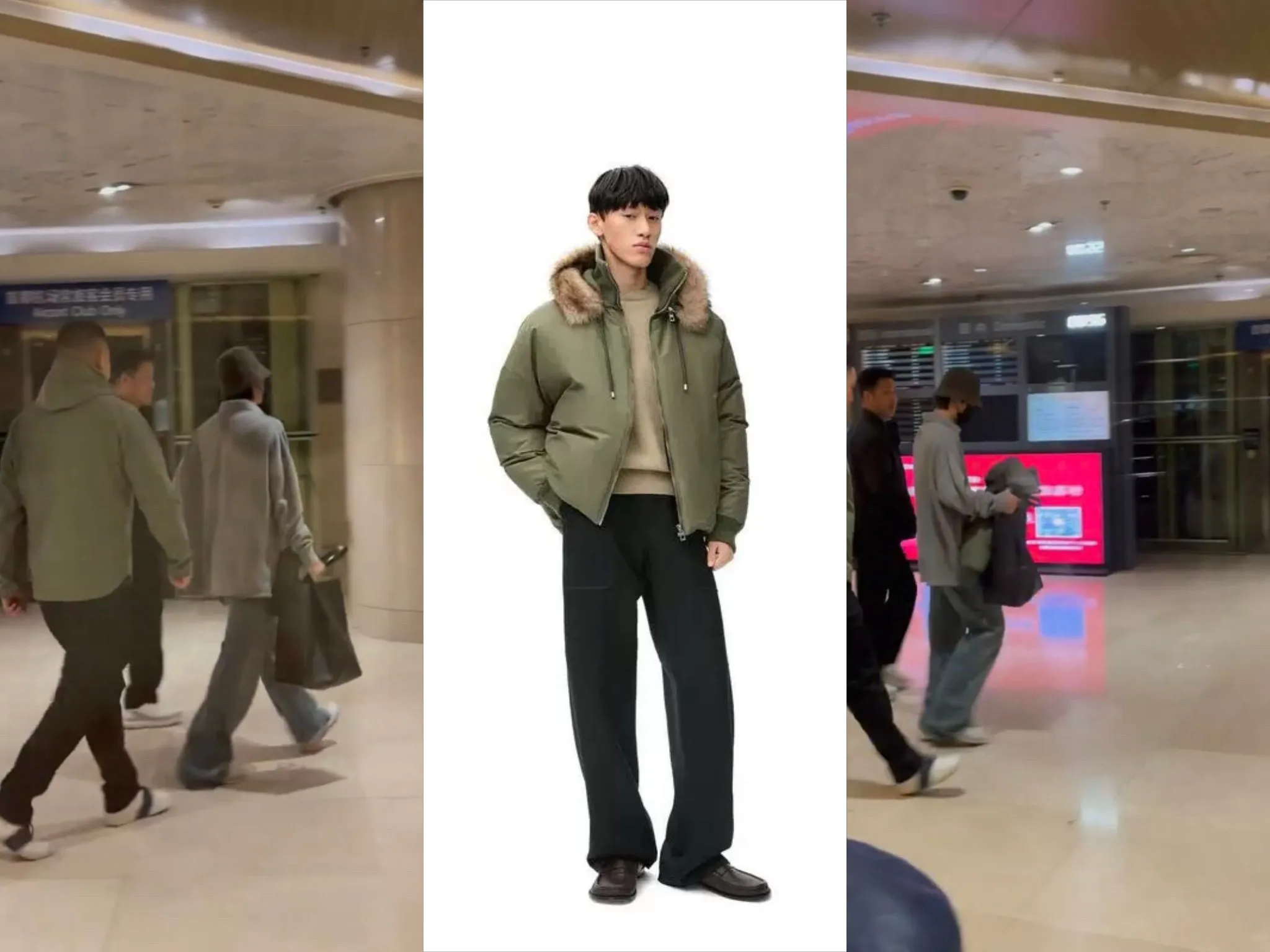 手上拿着的外套也是罗意威2024秋冬新款,防水科技棉的高领兜帽大衣外套
