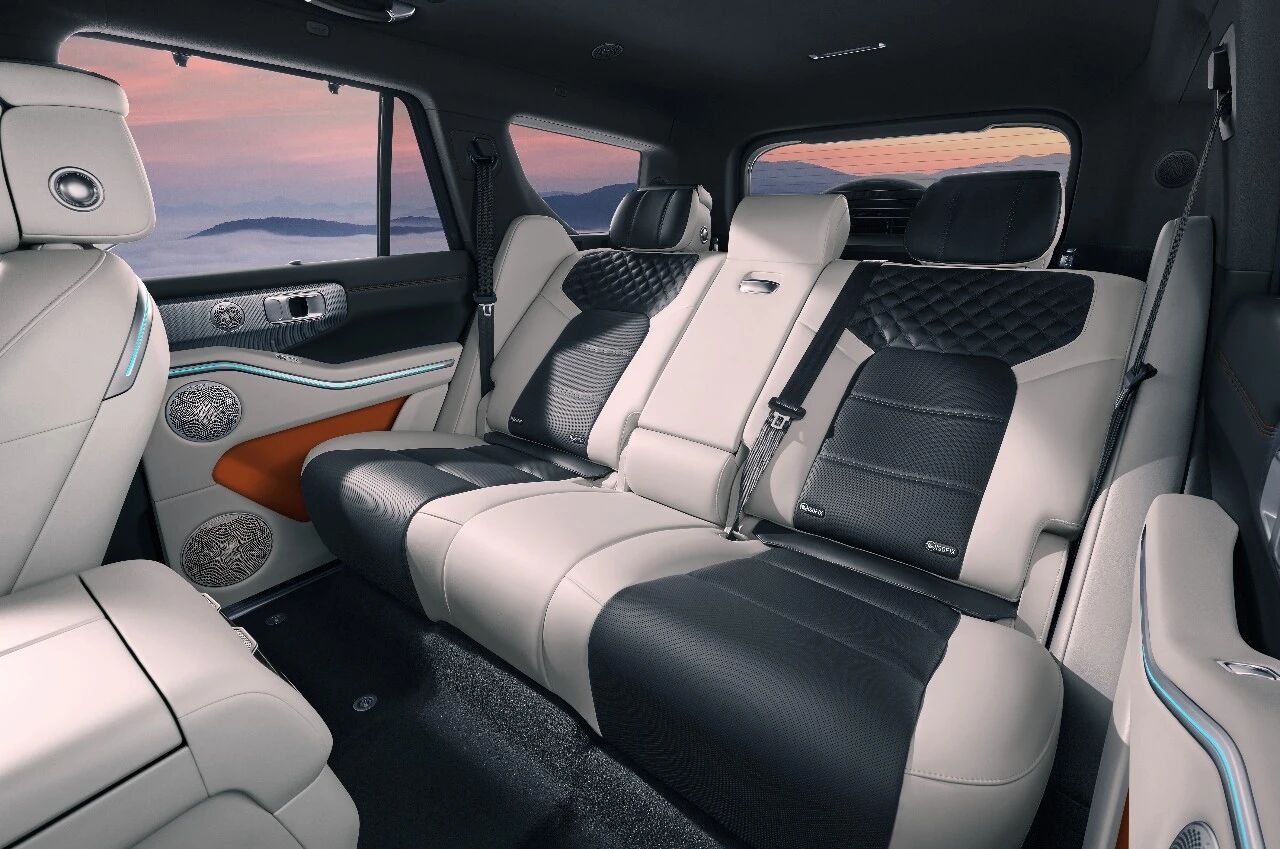智能配置层面:车内配置5.4L的车载智能冷暖冰箱,-6℃至50℃的宽幅温控,17.3英寸的3K吸顶娱乐屏,配合6种操控方式,支持行业领先的5D观影模式,能够让座椅按摩、音响、氛围灯、空调深度联动。