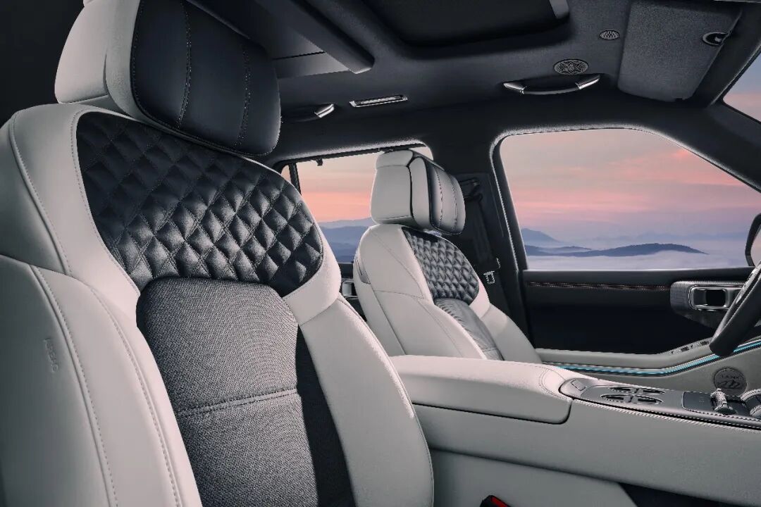 座舱舒适性上,全新坦克700全车座椅标配通风、加热、按摩。前排座椅可180°放平,后排支持141°无级电动调节。用料上,