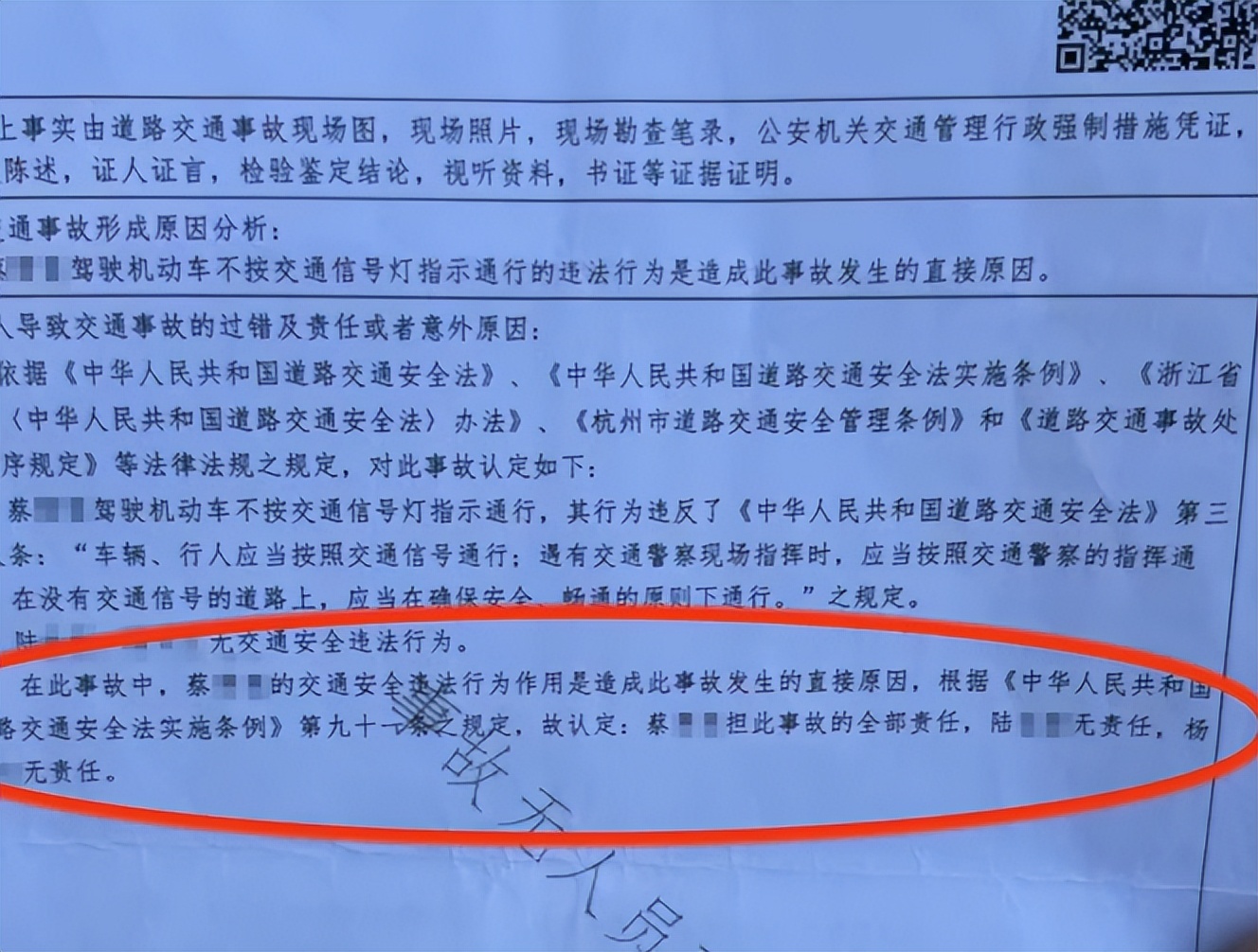 一个多月后,那张冷冰冰的判定书拿在手里:蔡师傅闯红灯,负事故全责!