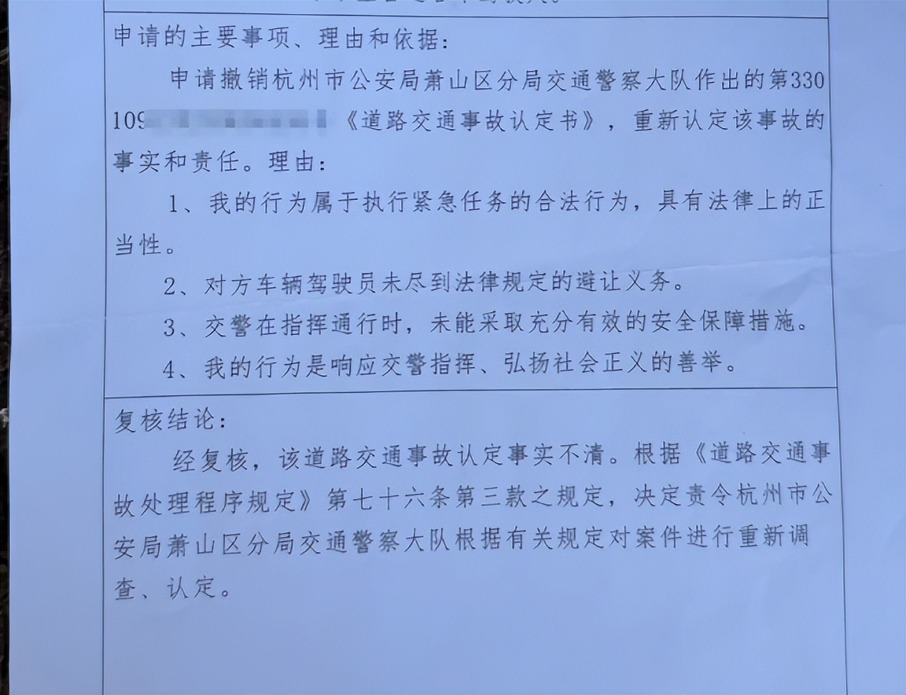 他不服,申请复核,可萧山交警大队最后还是那句话:维持原判。