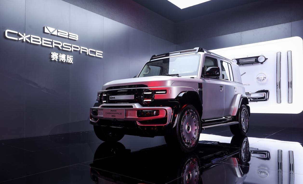 发布会现场还展示了多款用户改装车和官方定制版,突出“没有两台一样的V23”的个性化理念。尤其是与超境汽车联名打造的赛博版,以“银翼杀手”为灵感,出厂即合法改装,原厂哑光银漆和幻境白内饰科技感十足,真正实现“上牌即巅峰”。