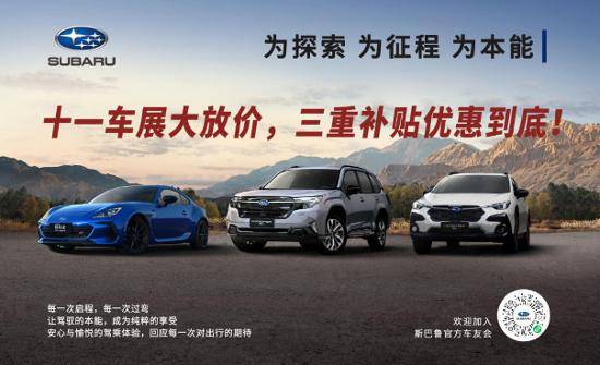 10月1日-10月4日大连十一国际车展,大连斯巴鲁携全新第六代森林人、BRZ、旭豹三款在售热门车型在大连世界博览广场参展。