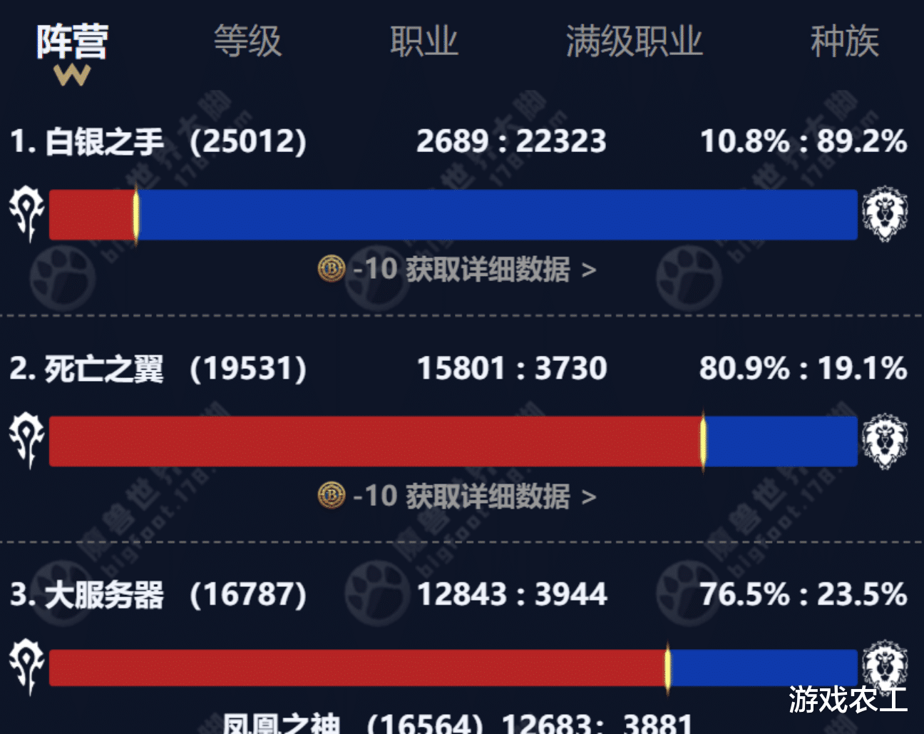 很多人可能会说,为什么不强制平衡?想一个问题,强制平衡目前魔兽世界正式服都已经来到了地心之战,而上面的人数可以发现单边服的情况依旧严重。换句话说,暴雪这么久都没有做出来的平衡,你指望雷火给你做到平衡,这点我认为不现实。除非说正式服没有单边服,而怀旧服有单边服,那么你可以说雷火有问题,但是目前真的是雷火的问题吗?