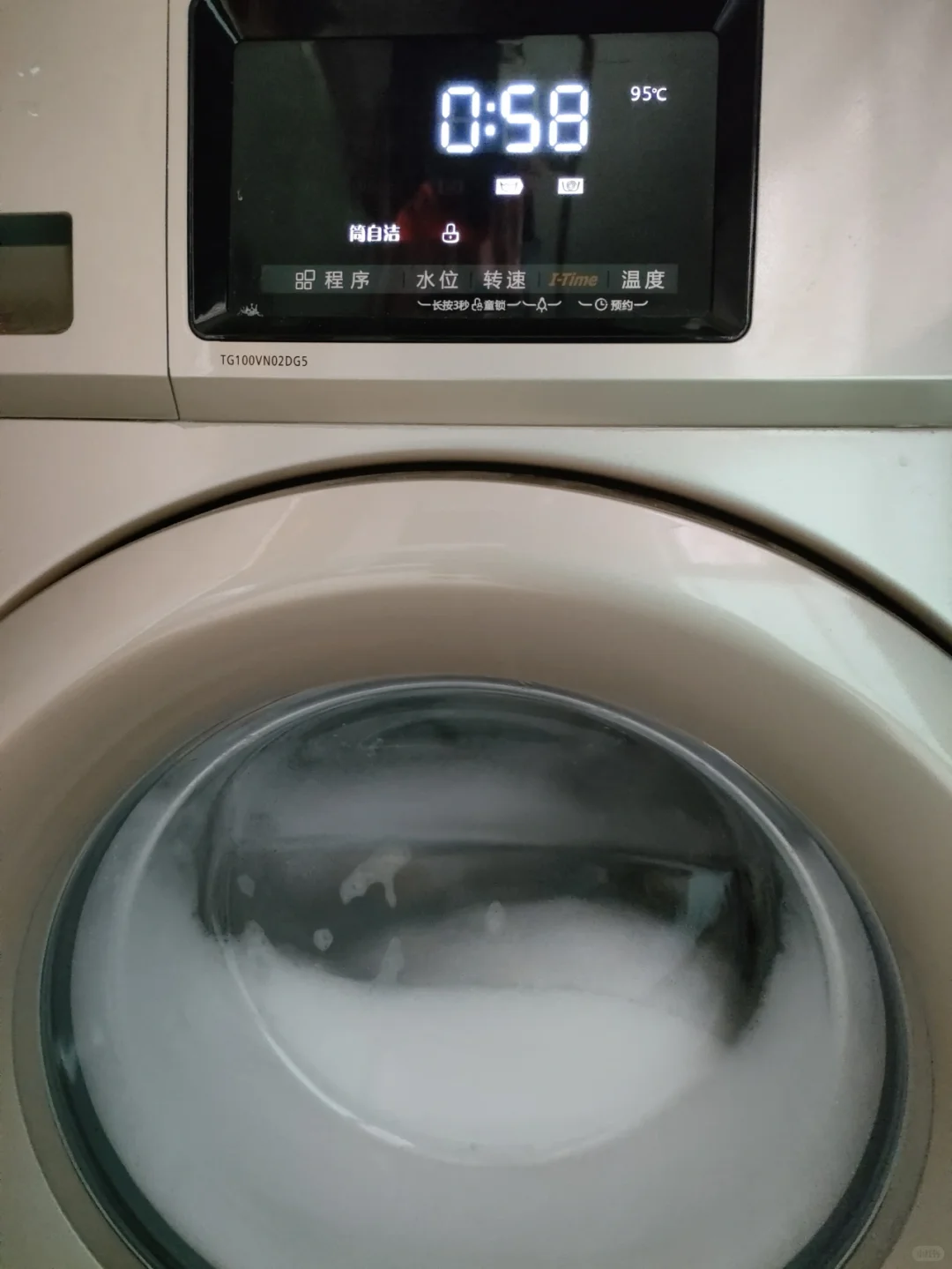 买的时候我就发现这款洗衣机的功能确实要比以前所使用的波轮洗衣机更多一些,