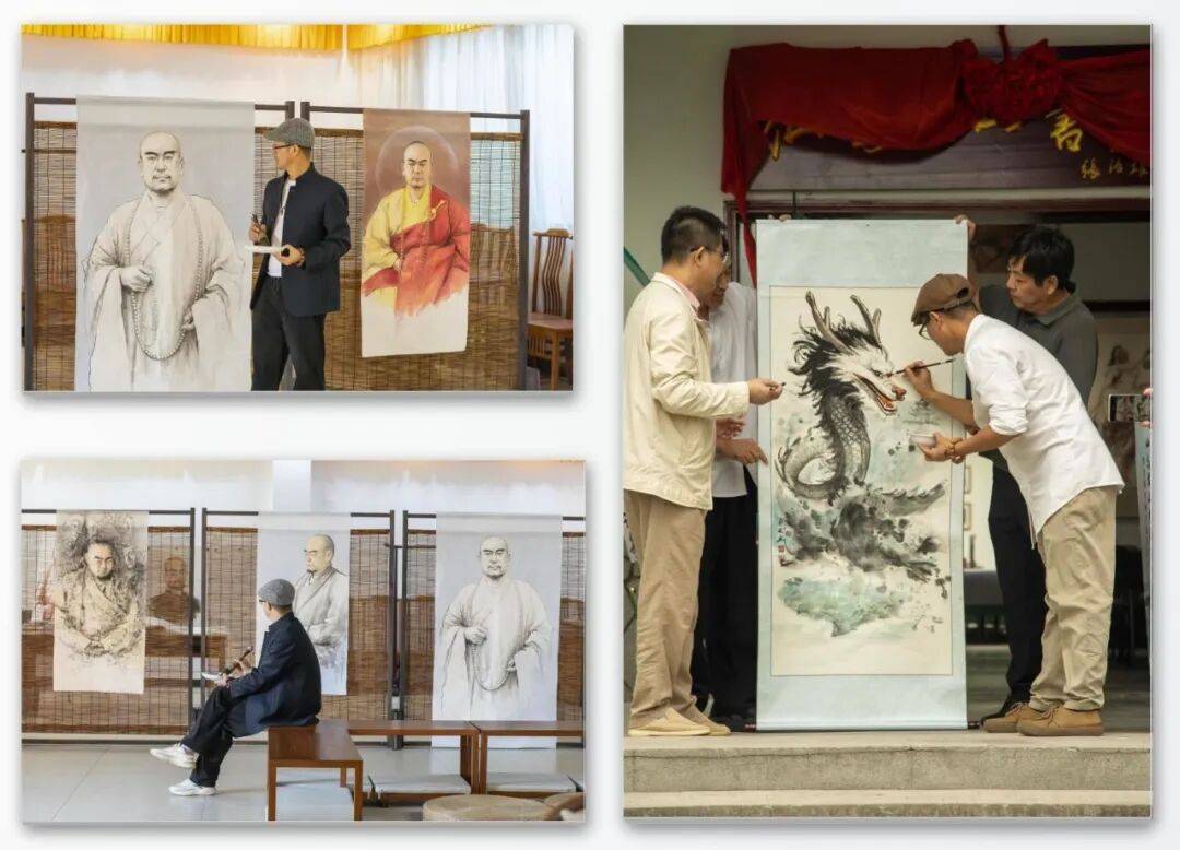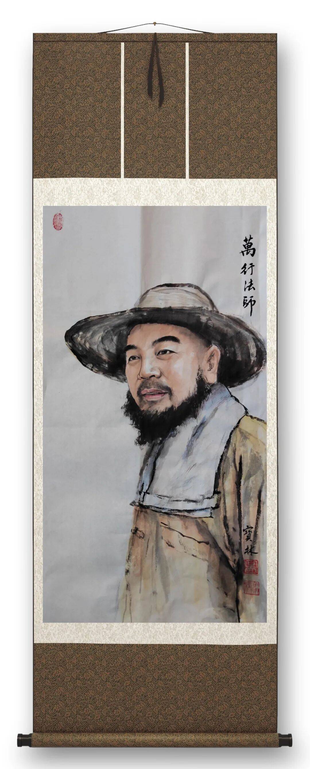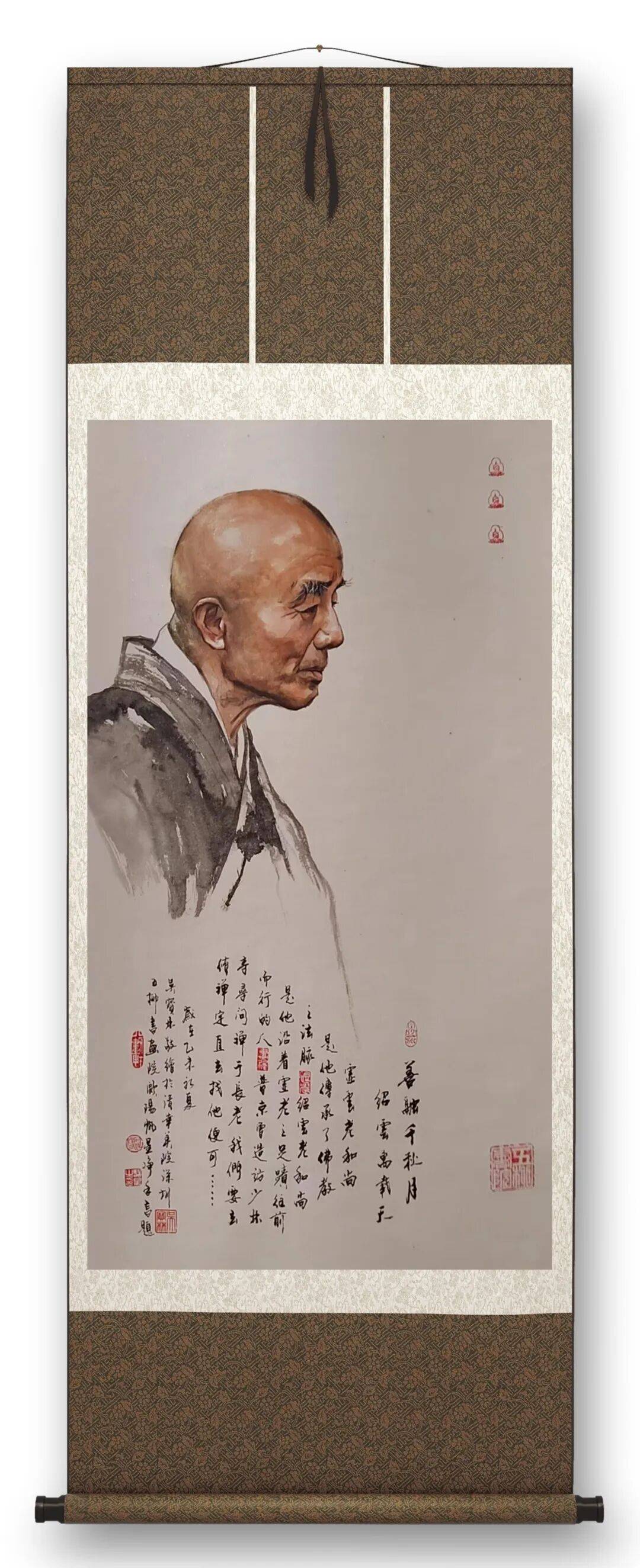 更为可贵的是,吴宝林的佛画创作始终暗含着对时代精神的回应,实现了宗教艺术与社会价值的同频共振。其《中华百僧图》系列并非单纯的人物肖像集锦,而是以百位高僧的精神群像,勾勒出中华佛教文化的传承脉络,传递出祈福济世的人文情怀;而他为韩国高僧创作的肖像作品,更以艺术为桥梁,让禅韵之美跨越国界,成为中外文化交流的纽带。这种创作取向,让佛画艺术跳出了“象牙塔”的局限,从个人精神寄托升华为承载文化传承、促进文明互鉴的载体,赋予了传统佛画全新的时代价值。