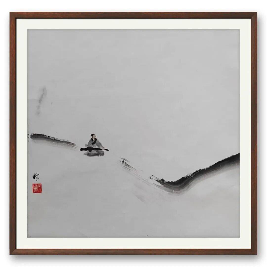在笔墨语言上,吴宝林实现了传统笔墨与现代审美的巧妙融通,为佛画艺术注入了新的表达维度。他以传统工笔的精细勾勒塑造法相庄严,线条遒劲而不失灵动,既延续了唐卡式的精微细腻,又融入了文人画的笔墨意趣;在色彩运用上,摒弃了浓艳俗丽的堆砌,以淡雅温润的色调营造禅意氛围,墨色的浓淡干湿与光影的明暗交错相得益彰,使画面既有传统水墨的空灵意境,又具备现代绘画的视觉张力。这种笔墨创新,并非对传统的颠覆,而是在传承基础上的突破——他始终坚守“笔墨当随时代”的创作理念,让传统笔墨成为承载当代精神的载体,使佛画艺术摆脱了小众化的审美局限,更易被当代观众理解与感知。