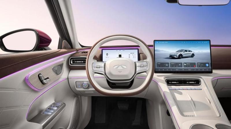 内饰方面,风云A9L光辉版延续简约科技风格,搭载15.6英寸悬浮式中控屏与10.25英寸全液晶仪表,和现款车一样,屏幕内置了高通8255芯片,车机系统操作流畅,支持5G网络、OTA升级以及全场景语音交互。