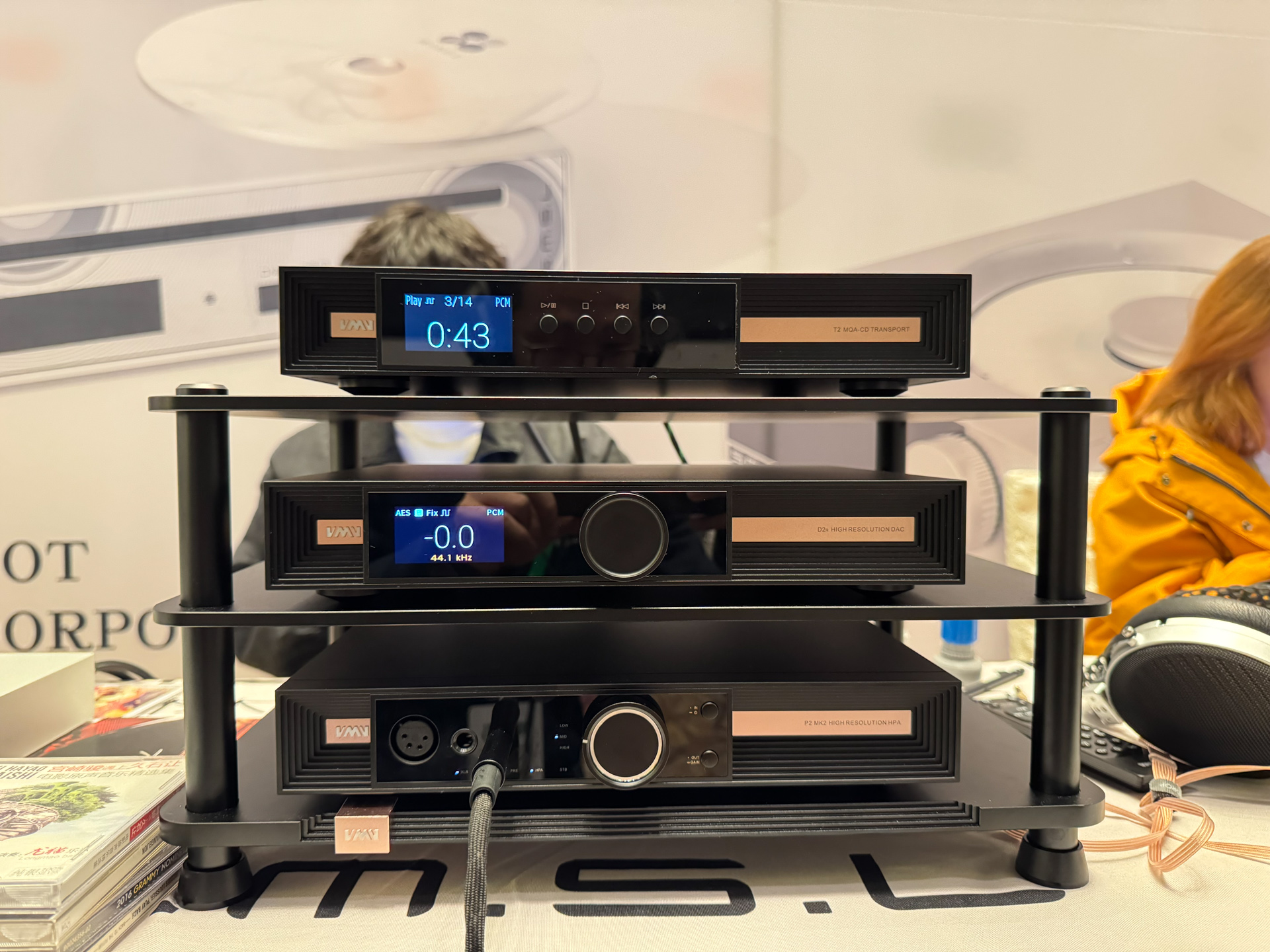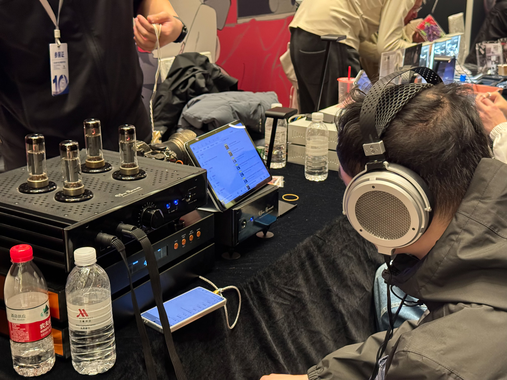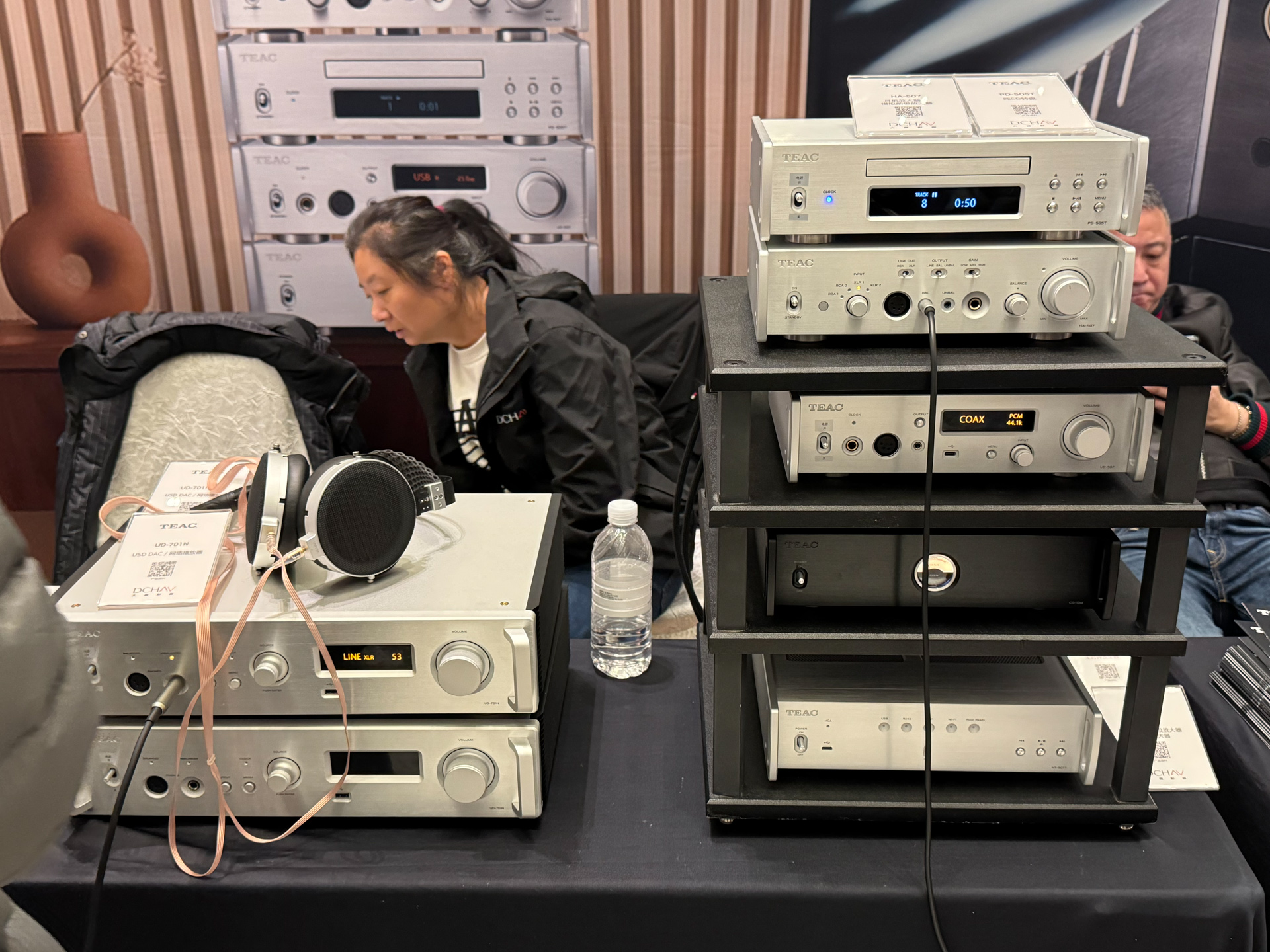 玩笑,器材们最好还是搬到家里去慢慢调试和品玩,很多时候碍于展会的供电和各种附件的临时搭配,出歪声也是很常见的事情,我一点都不会为此感到奇怪,也不会胡乱质疑这套的音质水准。