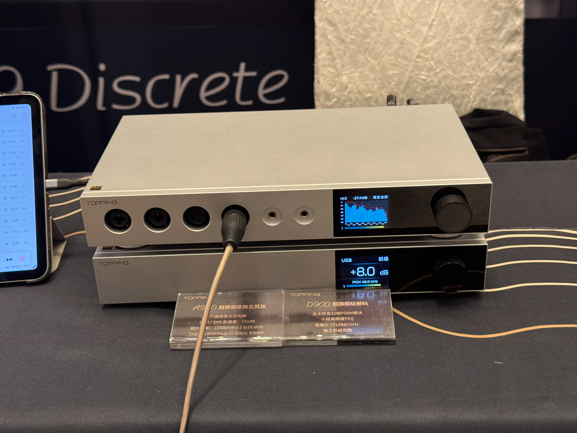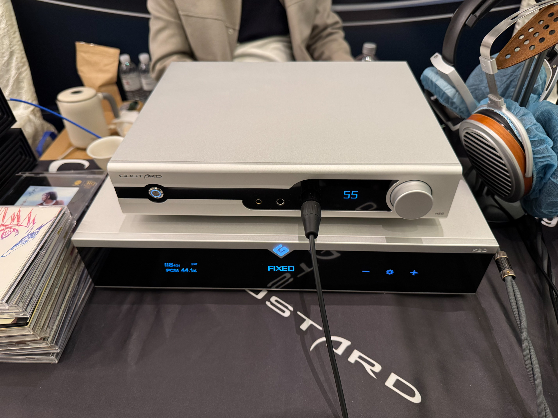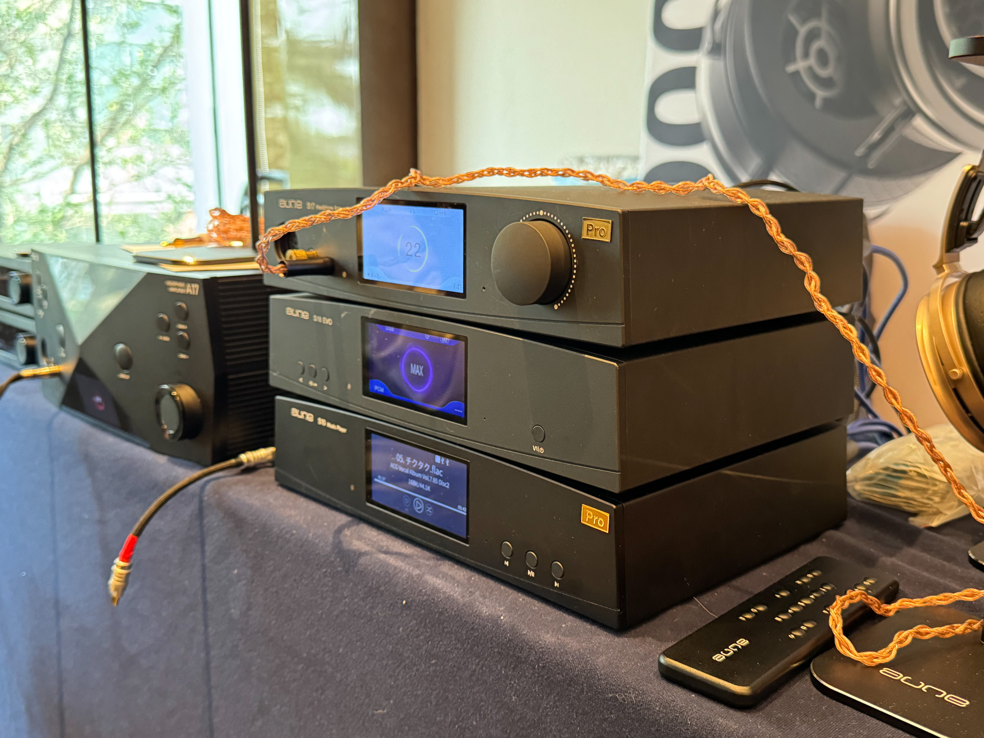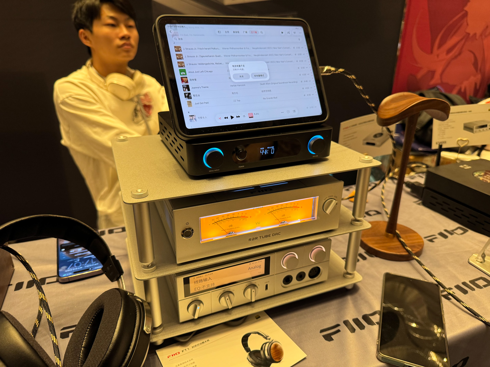 玩笑,器材们最好还是搬到家里去慢慢调试和品玩,很多时候碍于展会的供电和各种附件的临时搭配,出歪声也是很常见的事情,我一点都不会为此感到奇怪,也不会胡乱质疑这套的音质水准。