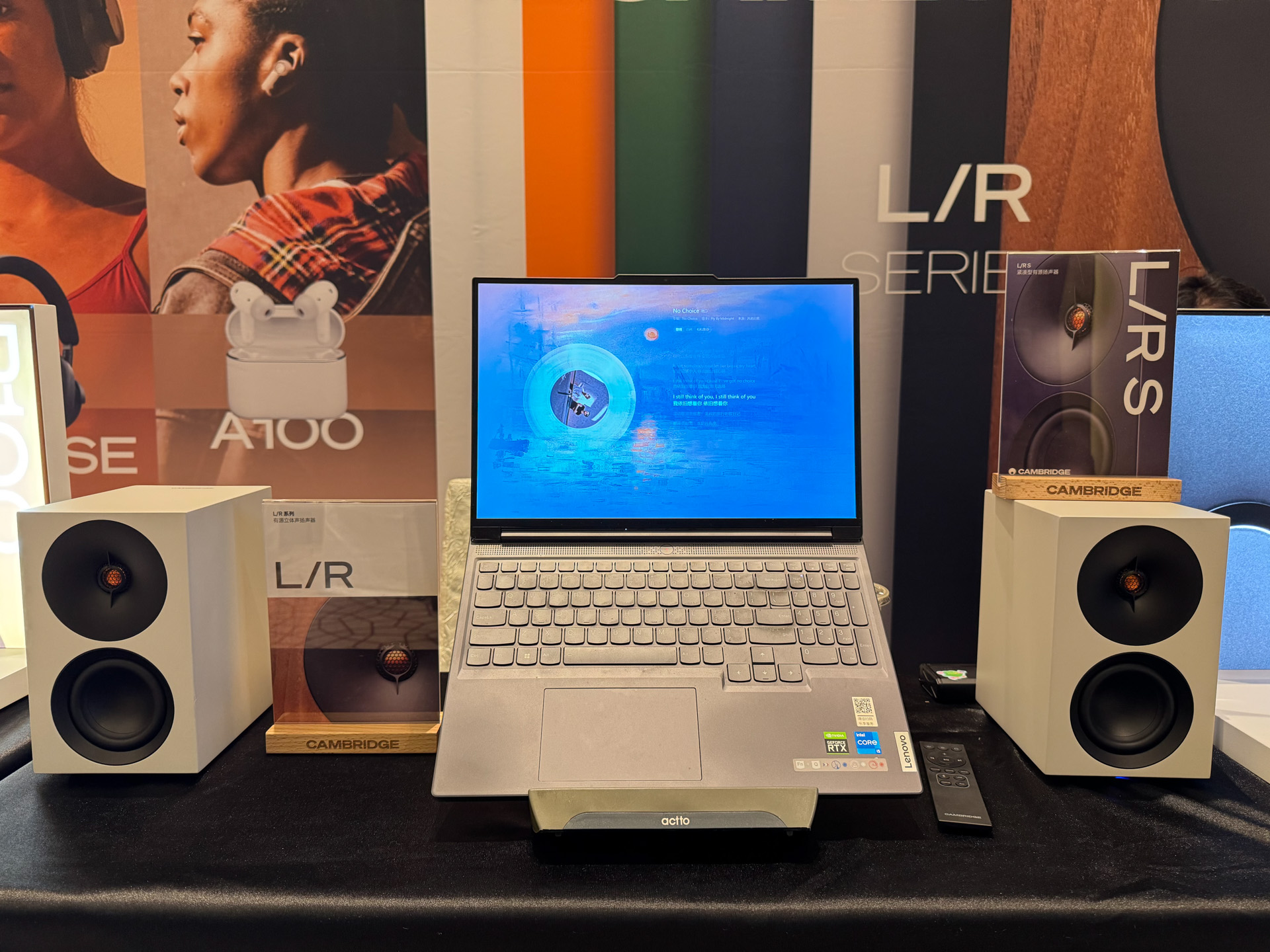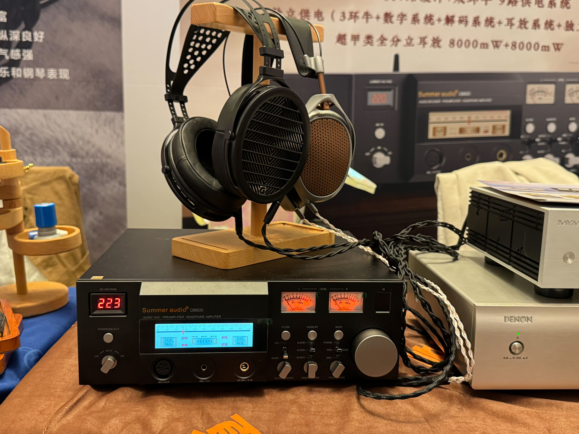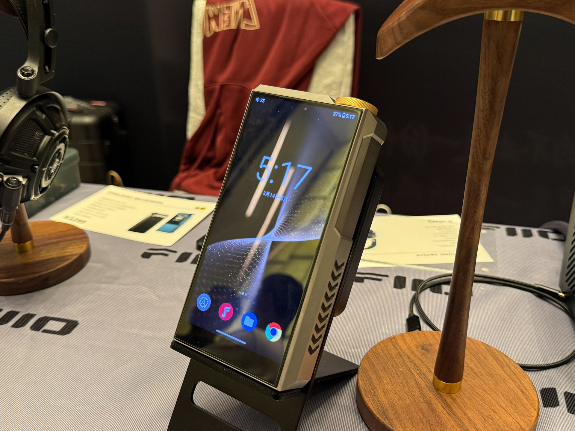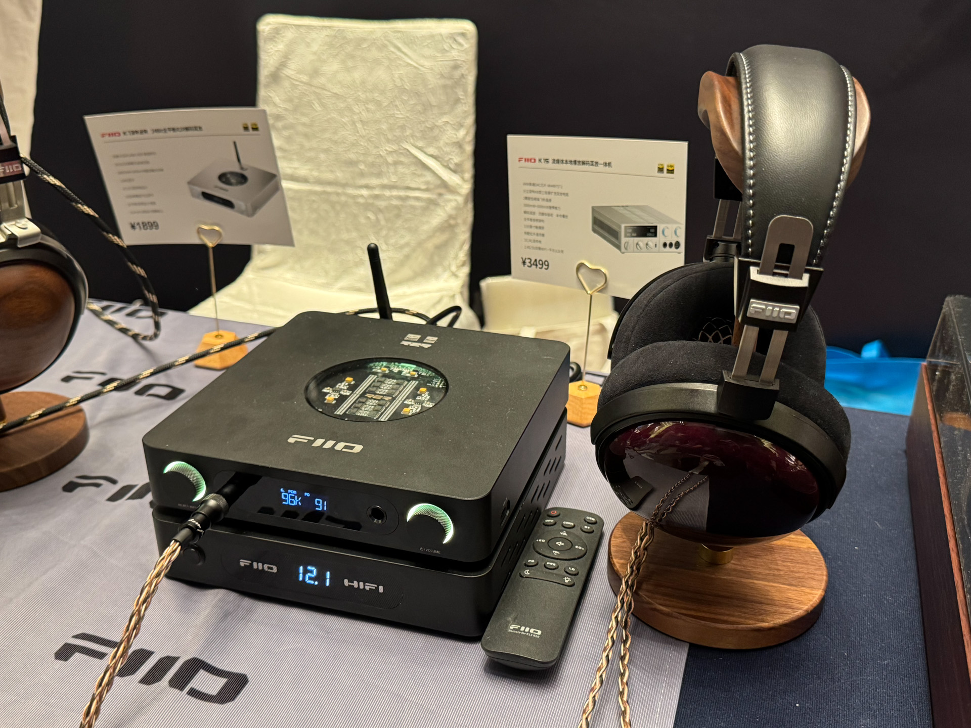 达音科展位上,同业好友表示非常喜欢右边那个大耳机,没记错的话是叫岚。