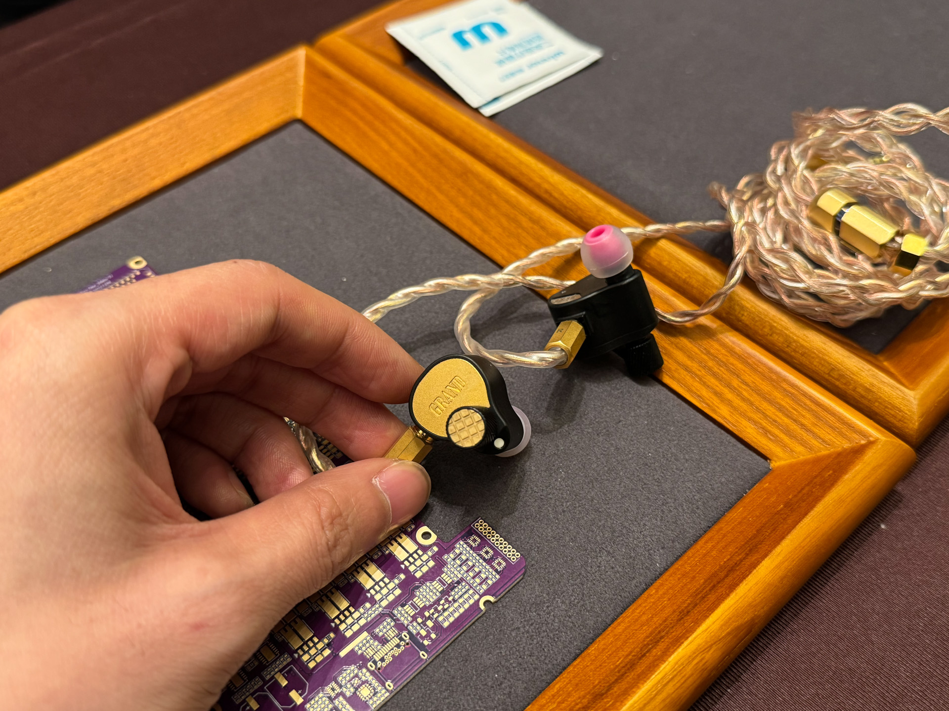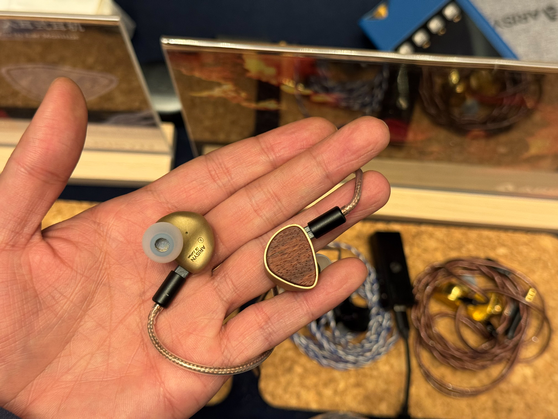 逛到一个叫Arisyn牌子的展位,一看这耳机忍不住好家伙,这用料,这做工,这手感,看着都好听。一看就是个好好做产品的牌子。