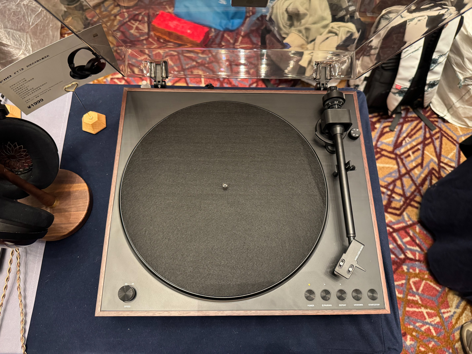 飞傲的首款黑胶唱机,想必是充满了现代化功能韵味和视觉感的。这次看到个新款黑胶唱机,又是另一番的完全复古感,正好旁边有同业朋友问,为什么改的这么复古了,厂家人员有说明,玩黑胶的用户,还是老派用户多些...