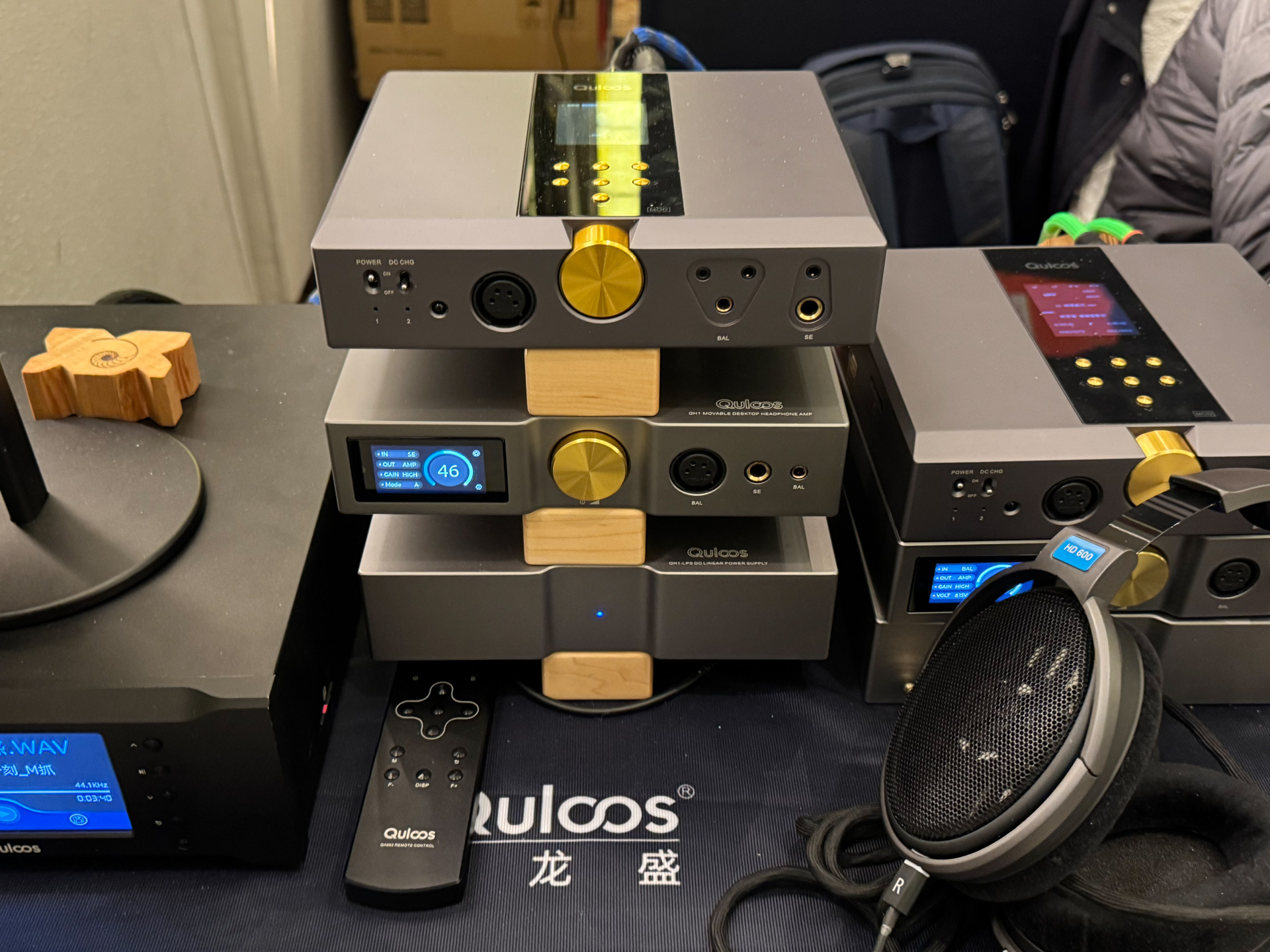 这次乾龙盛在比较不起眼的地方,展示了自己的全套小台机。即便再不起眼,看到那一大堆木质避震附件的应用,那种属于HiFi佬的默契,一下子就把我吸引过去了...