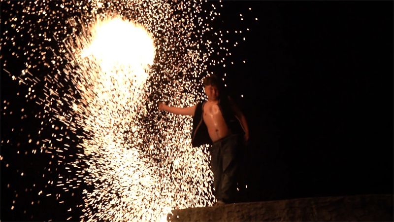 除了静态的灯组展示,现场的动态表演同样精彩纷呈。国潮不倒翁表演者身着古装、轻摇罗扇,与游客亲切互动、俏皮合影,营造出浓厚的国潮氛围感。而每晚定时上演的国家级非物质文化遗产“打铁花”表演,更是将现场气氛推向最高潮。只见滚烫的铁水被表演者奋力击向夜空,瞬间绽放出万千金色的铁花,如繁星雨落,似火龙腾空,绚烂夺目、震撼人心,引得围观群众惊呼不断、掌声雷动。
