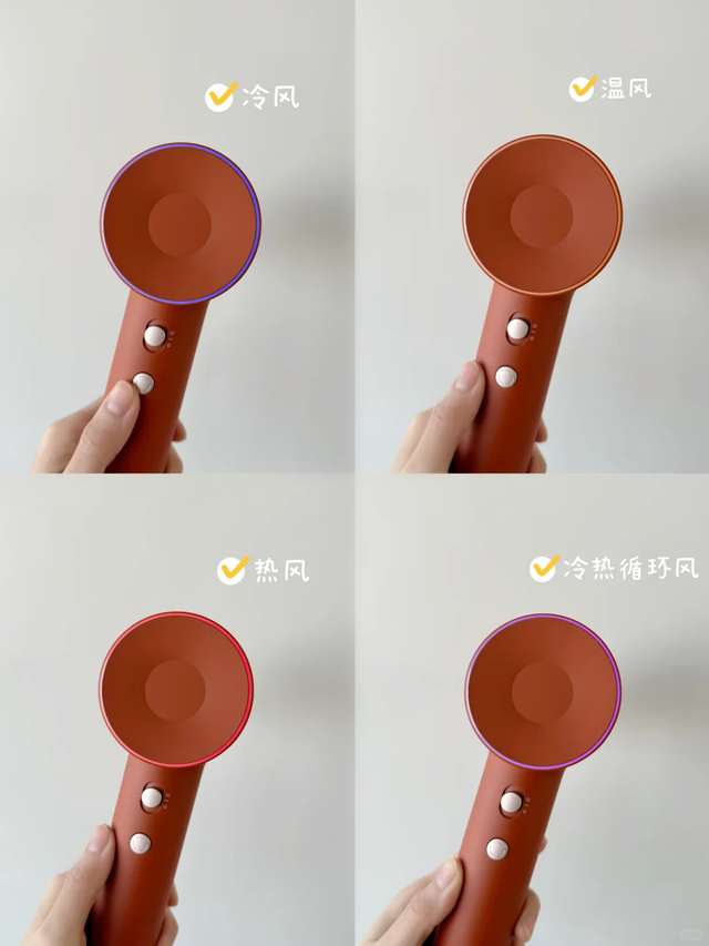 2档风速6种风温,共有10种护发模式可供选择,能满足不同的使用需求。而且对应的风温还有不同灯环颜色显示,调节的时候一目了然。
