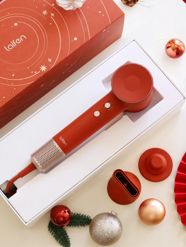 这款徕芬SE 2敦煌红礼盒,限定的敦煌红配色喜庆而不俗气,高级感满满!红色的银河星空礼盒设计,吹风机机身连同赠送的风嘴和磁吸支架,都是同色系的,颜值爆棚,节日氛围感拉满,送礼的仪式感直接被狠狠地拿捏了!妈妈说这寓意也好,新年新气象,一切都红红火火!她看见这个礼盒时,都能感觉到眼里有光,那是真的喜欢!