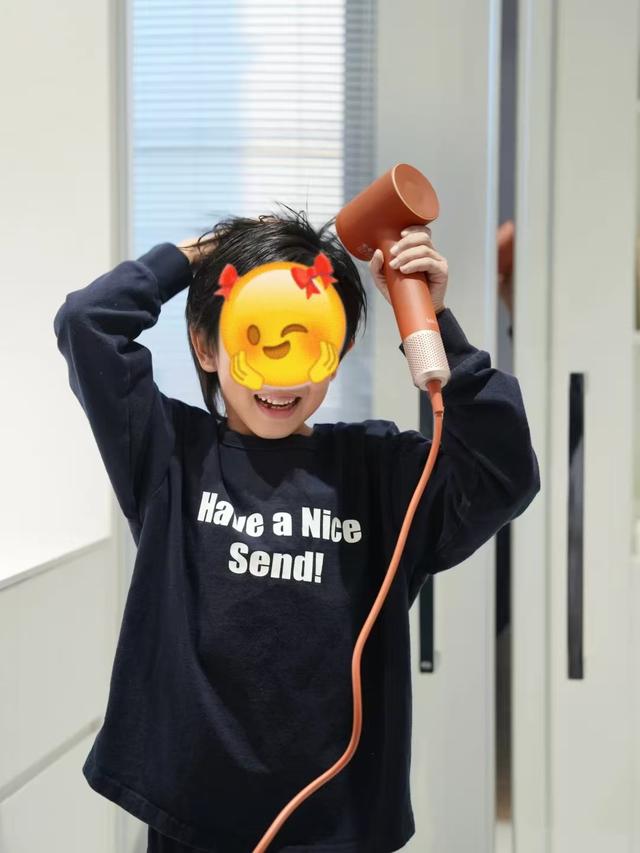 现在洗完头发之后,她就拿着吹风机自己吹,就像拿着心爱的玩具做游戏一样,吹完还美滋滋地对着镜子左看右看。我妈说再也没为吹头发打过“游击战”,可真省心了!