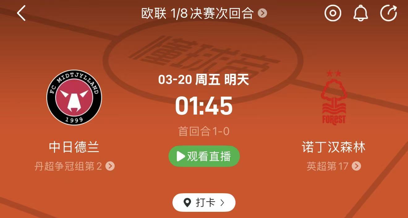🔹 周四004 欧联杯:中日德兰 vs 诺丁汉森林(01:45)