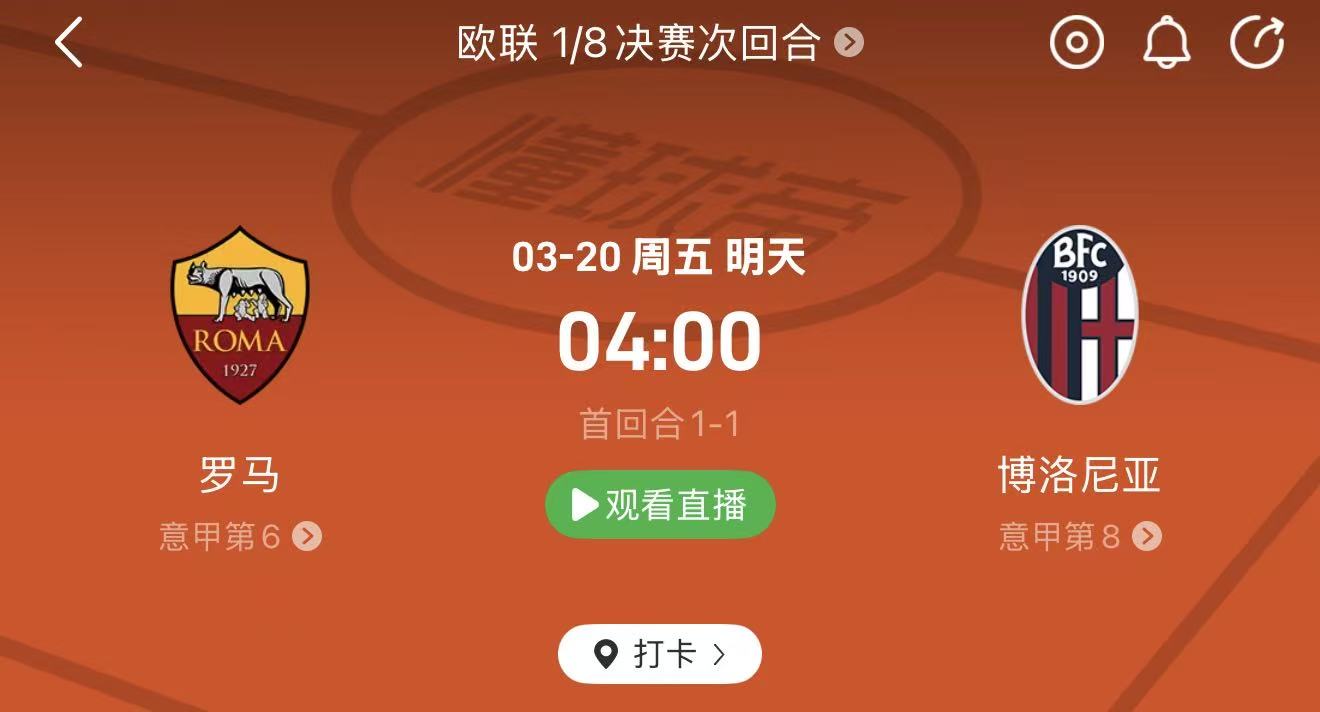 🔹 周四007 欧联杯:罗马 vs 博洛尼亚(04:00)