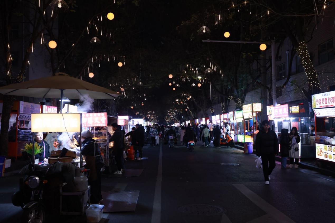 据了解,黄河南街便民疏导点是根据郑城管专班办〔2025〕6号文《关于印发2025年郑州市城市精细化管理工作方案的通知》及金城管专班办〔2025〕1号文《关于印发2025年金水区城市精细化管理工作方案的通知》的总体部署设立的,是城市治理从“单一管理”向“服务为先”转变的一次成功实践。它既保留了城市应有的“烟火气”和便利性,又提升了市容秩序,实现了摊贩安家、市民便利、市容提升、管理增效的“多赢”局面。优街文创街区更成为金水区夜经济增长的“新引擎”,推动消费潜力持续释放。优街汇聚了来自天南海北100多家特色小吃、潮流文创、休闲娱乐等多元业态,既吸引本地老字号入驻传承烟火味道,也为青年创业者提供了低成本创业平台,带动了大量灵活就业岗位。优街与周边商圈、特色街区形成业态互补,通过常态化举办美食节、民俗展演、亲子互动等活动,有效延长了消费链条,激活了夜间消费活力。