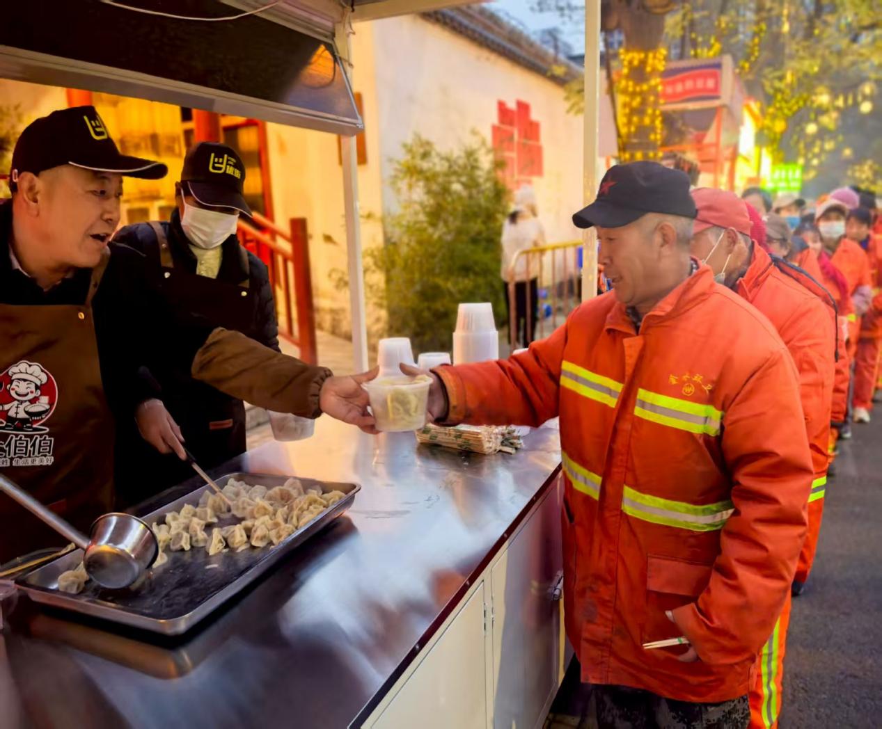 2025年冬至日当天,郑州市金水区黄河南街便民疏导点却暖意融融。由疏导点管理方联合商户志愿者共同发起的"冬至送暖"活动在此开展,为辖区内的环卫工人送上热腾腾的饺子,用烟火气驱散冬日寒冷,让坚守岗位的城市美容师感受节日温暖。大石桥街道办事处以传统节日为纽带,联动黄河南街便民疏导点,用一碗碗热饺子、一次次贴心服务,为环卫工人和邻里街坊送上冬日暖意,让便民疏导点成为承载城市温度与邻里温情的“幸福驿站”。