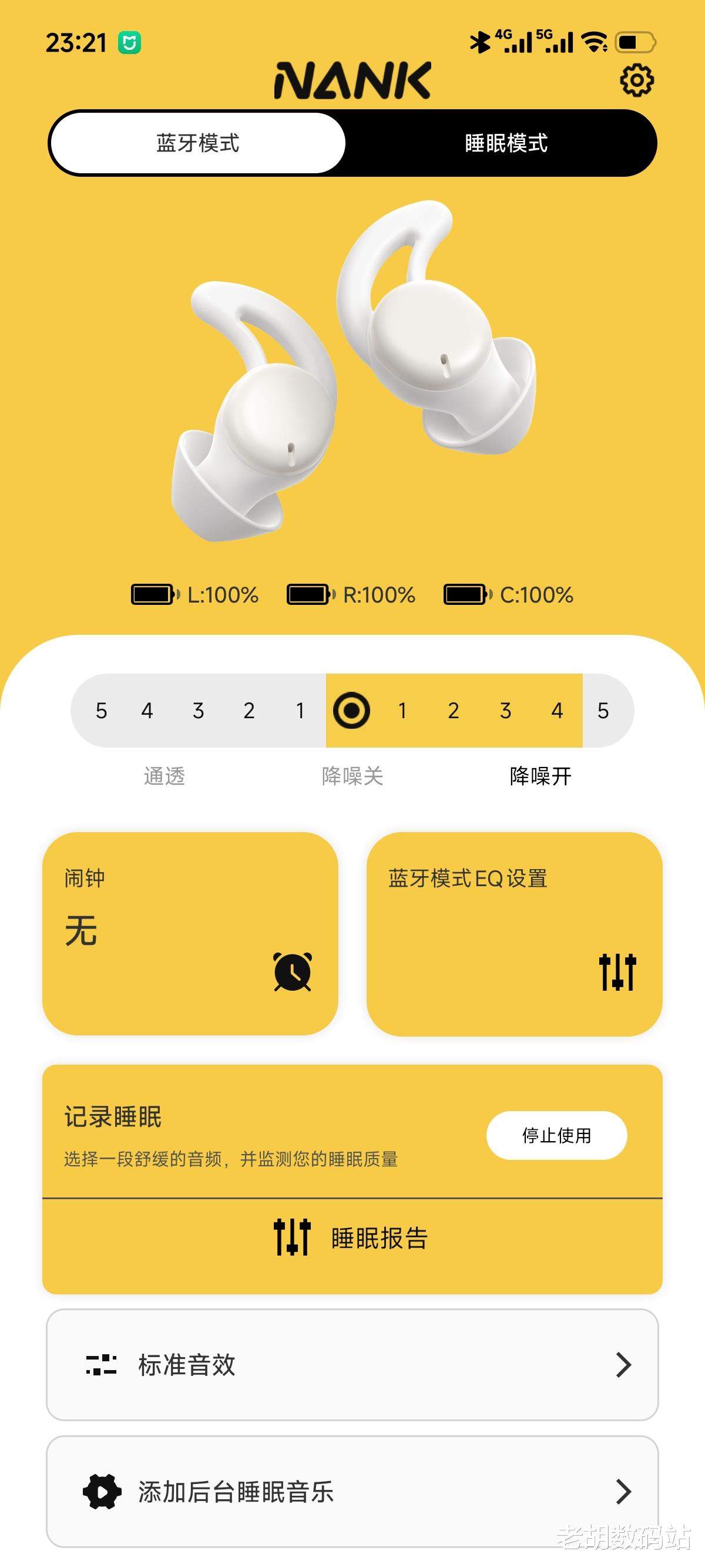 APP里也能自己折腾些设置,像蓝牙模式和睡眠模式可以随时切——前者正常听歌,后者会把提示音全关掉,省得半夜被吵醒。音效有几种EQ曲线能选,找自己听着舒服的就行。睡眠音乐是直接内置的,禅意轻音、林风拂叶、微光入梦、夏鸣潺潺都有,选好定时,不用再单独开别的软件。现在每天睡前就是调好模式、选个降噪档、点开雨声、定时一小时,然后躺下等着睡着。