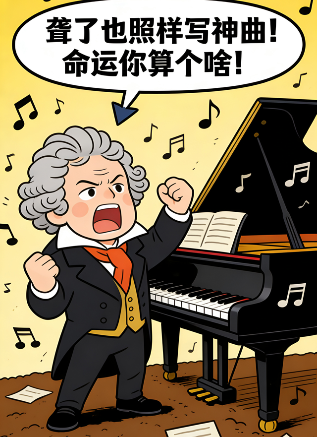 但他没摆烂,反而写出《命运交响曲》《第九交响曲》,把命运按在地上摩擦。